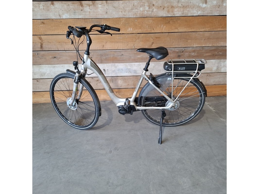 Merk: Giant Product: Elektrische fiets Kleur: Goud Materiaal: Aluminium Afmeting: 28 inch Conditie: Gebruikt Specificaties: - Werkend weggezet - Voorzien van midden-motor - Exclusief lader