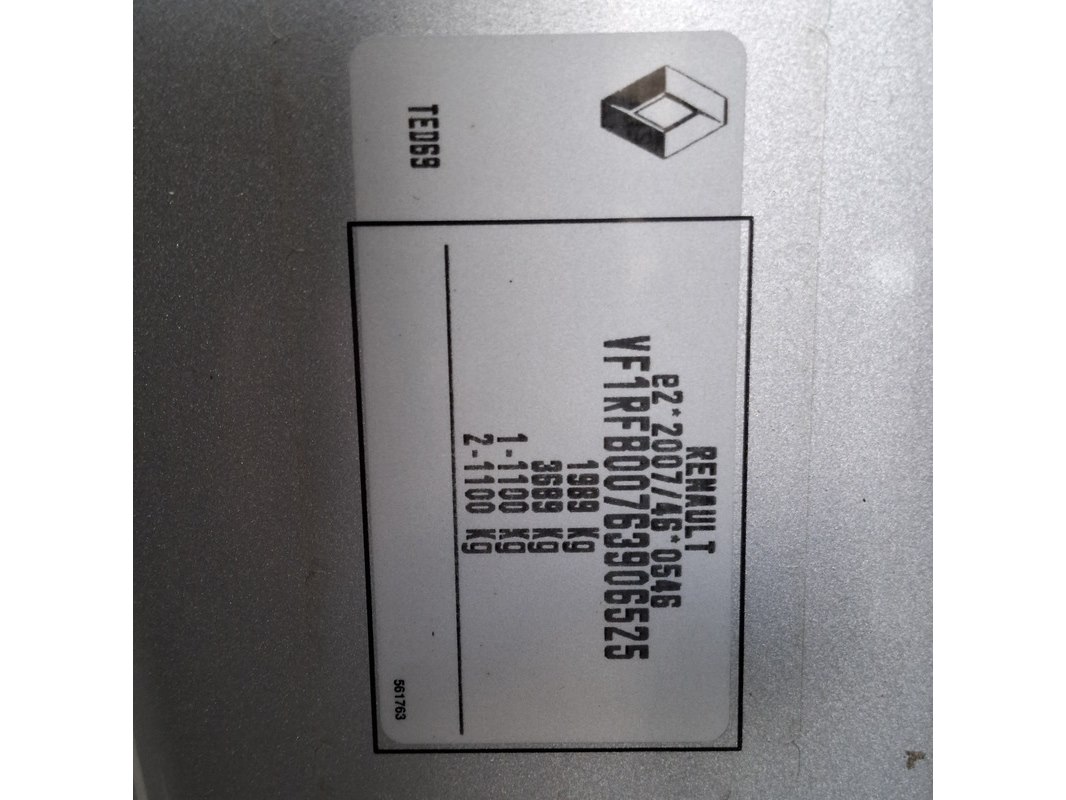 Merk: Renault Product: Personenauto Specificaties: Kenteken: Niet geregistreerd Eerste toelating nationaal: Niet geregistreerd APK vervaldatum: Niet van toepassing Brandstof: Diesel Transmissie: Automaat Afgelezen tellerstand: Aantal sleutels: 3 VIN nummer: VF1RFB00763906525 Start: Ja, met booster Opties e.d. Elektrische ramen en spiegels Airconditioning Cruisecontrol Navigatie Radio met display Parkeersensoren Waargenomen gebreken Schade achterbumper en scherm RA. Diverse storingslampjes branden (Volgens opgave: technische gebreken door lange stilstand) Gebruikssporen rondom Het Certificaat van Overeenstemming (CVO) is aanwezig bij het voertuig.