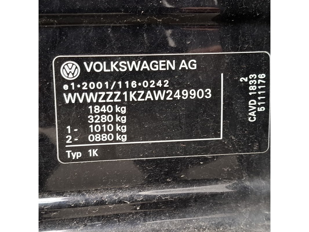 Merk: Volkswagen Product: Personenauto Specificaties: Kenteken: Niet geregistreerd Eerste toelating internationaal: 29-01-2010 Eerste toelating nationaal: Niet geregistreerd APK vervaldatum: Niet van toepassing Brandstof: Benzine Transmissie: Handgeschakeld, 6 versnellingen Afgelezen tellerstand: 140.642 Aantal sleutels: 1 VIN nummer: WVWZZZ1KZAW249903 Start: ja Opties e.d. Elektrische ramen en spiegels Airconditioning Cruisecontrol Navigatie Radio met display Parkeersensoren Sunroof. Waargenomen gebreken Motorkap sluit niet goed. Gebruikssporen rondom Het Duitse kentekenbewijs ontbreekt. Voertuig kan worden aangeboden voor import maar dan zal er op dat moment een verklaring geen bezwaar aangevraagd moeten worden in Duitsland. Goedkeuring op basis van buitenlandse goedkeuring binnen de EU.