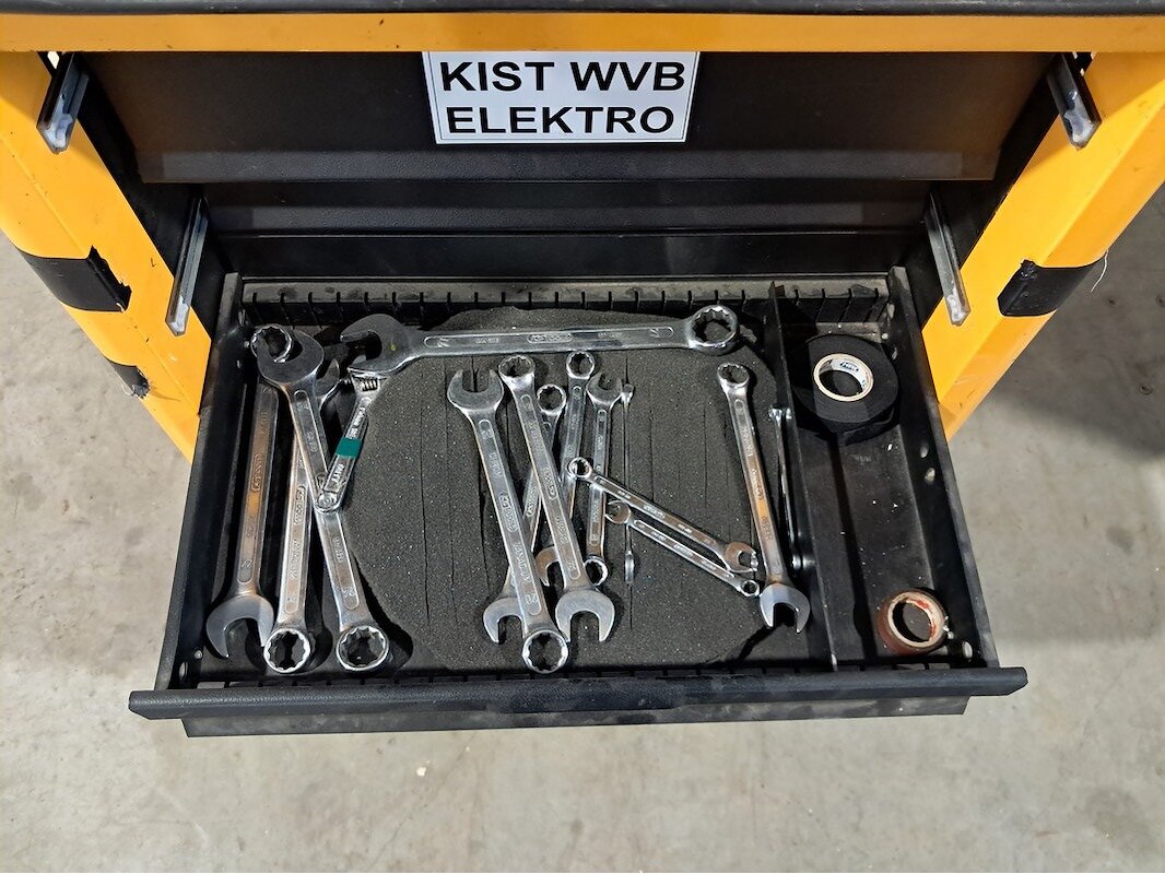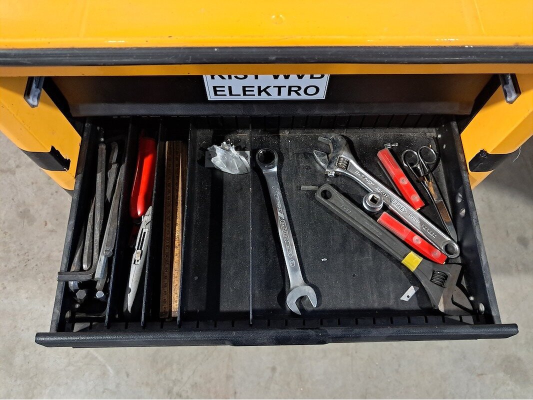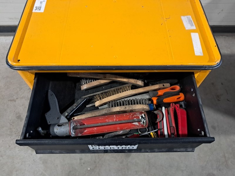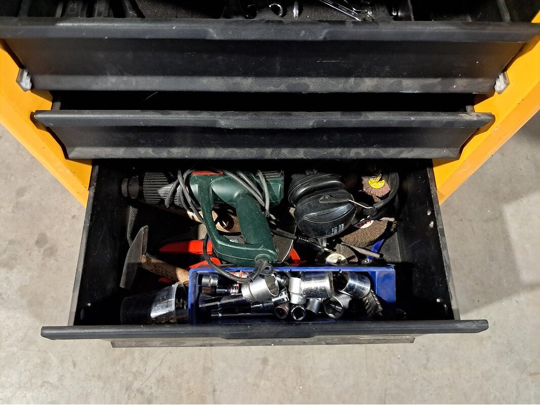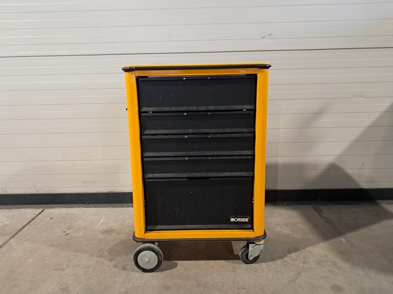 Merk: Ironside Product: Verrijdbare gereedschapskist met inhoud Kleur: Geel Specificaties: Bestaande uit: - Verrijdbare gereedschapskist Ironside met 5 schuiflade 's - Inclusief gereedschap