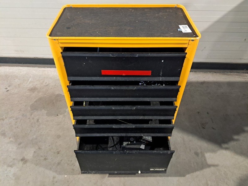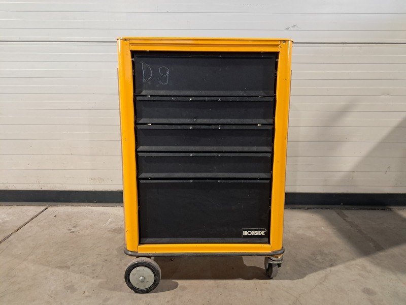 Merk: Ironside Product: Verrijdbare gereedschapskist met inhoud Kleur: Geel Specificaties: Bestaande uit: - Verrijdbare gereedschapskist Ironside met 5 schuiflade 's - Inclusief gereedschap