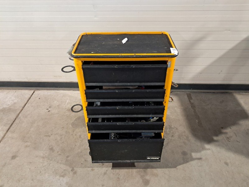 Merk: Ironside Product: Verrijdbare gereedschapskist met inhoud Kleur: Geel Specificaties: Bestaande uit: - Verrijdbare gereedschapskist Ironside met 5 schuiflade 's - Inclusief gereedschap