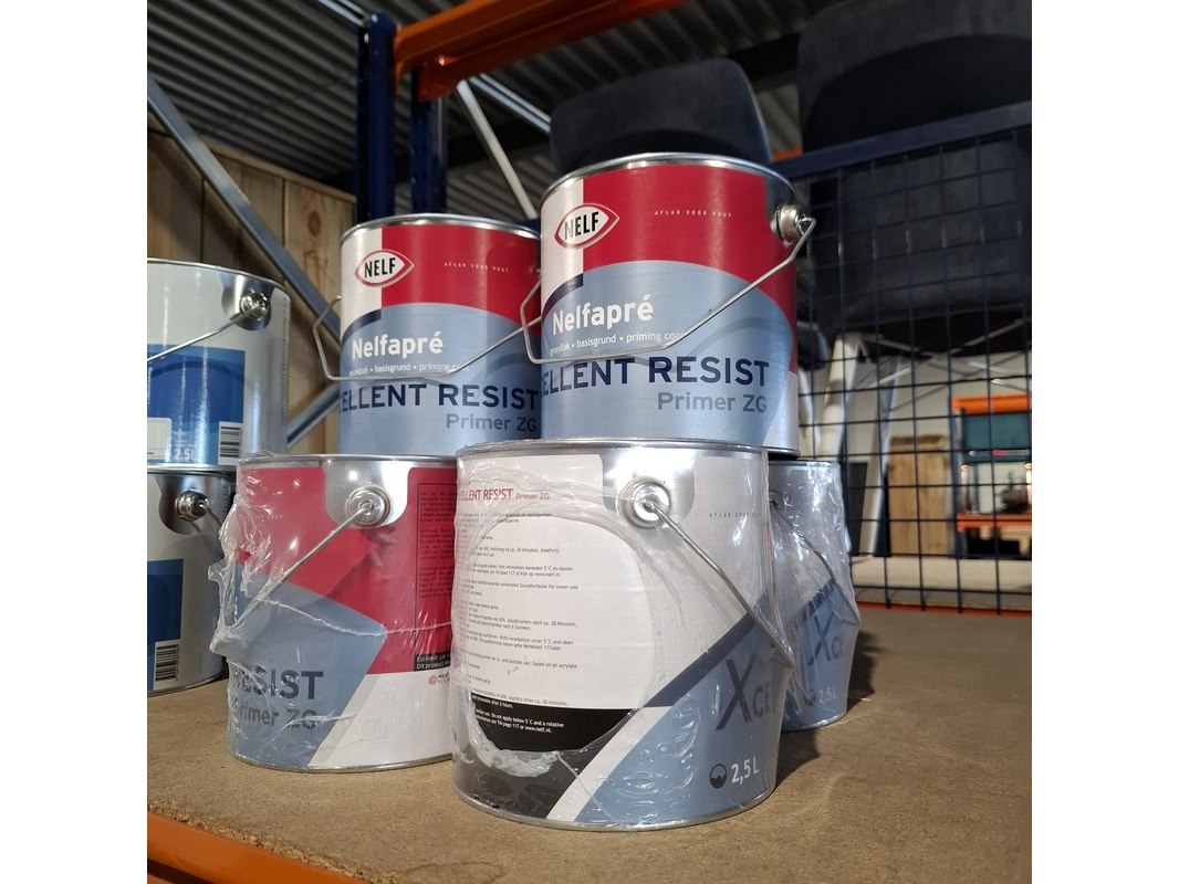 6 x 2,5 liter aqua primer satin wit, nelf