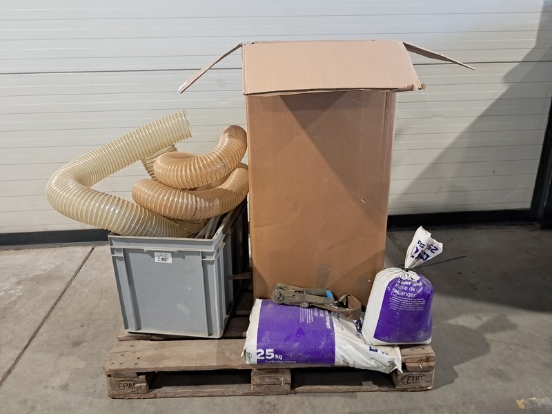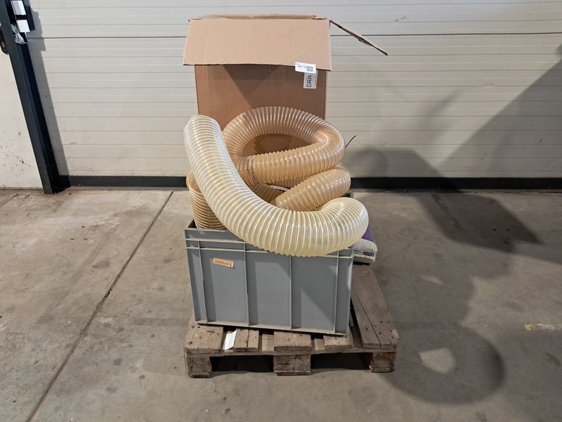 Product: Partij buizen en slangen Specificaties: Partij bestaande uit o.a.: - Diverse kunststof slangen - Diverse metalen buizen - Diverse klemmen - 2x zak turbomix beton