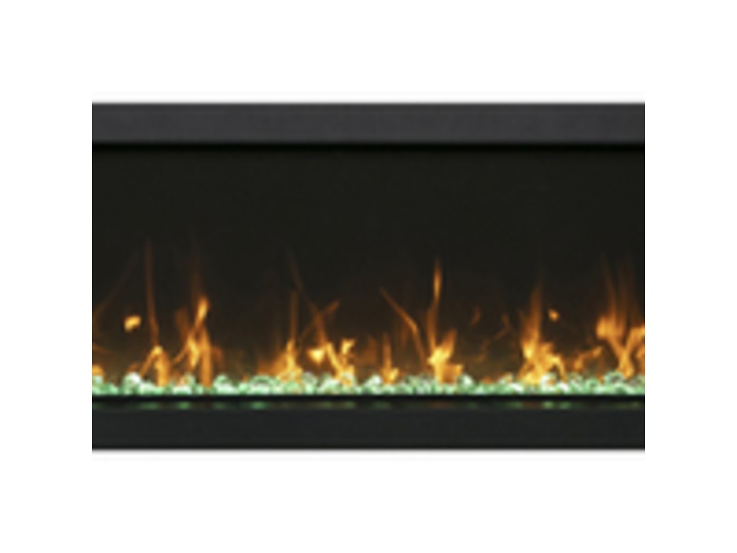 Merk: Remii Product: Elektrische sfeerhaard Kleur: Zwart Materiaal: Metal Afmeting: Appliance Width 54 1/8" or 137.6 cm Appliance Height 19 7/8" or 50.4 cm Appliance Depth 4" or 10.25 cm BouwJaar: 2017 Conditie: Nieuw Specificaties: Boasting our Flame presentation with three-color LED light strips allowing for multi-color flame options. With just a click of the included remote control, choose from red, yellow, or orange colored flames. The Extra Slim fireplace comes standard with Canyon Brown and Ocean Blue fire glass media. Additional media options are available for purchase. KEY FEATURES All models are rated for either indoor/outdoor applications State of the art flame presentation: Vibrant, multi-colored state of the art flame presentation – change from Yellow to Orange to Red with just a click of the remote. Very thin – only 4” in-depth 2 Stage heater Hardwire ready Thermostat hard-wire ready Can produce up to 5000 BTU of heat, enough to heat up to 500 sq feet Flame can operate without heat Single remote control for flame & heater included Full frame viewing – unit allows for choice of finishing material to come right to the glass Optional black steel surround comes in the box, it is up to you if you want to use it or not