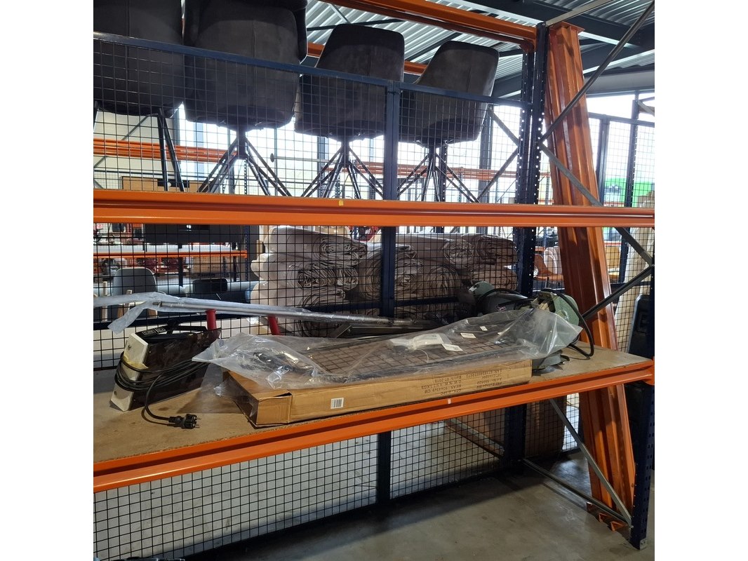 Product: Divers materiaal Specificaties: Bestaande uit: - Auto-rek - Monteurs bed - 2x Draaistok luifel - Slijpmachine - Bouwlamp - 3x ligger t.b.v stelling lengte ca. 250 cm