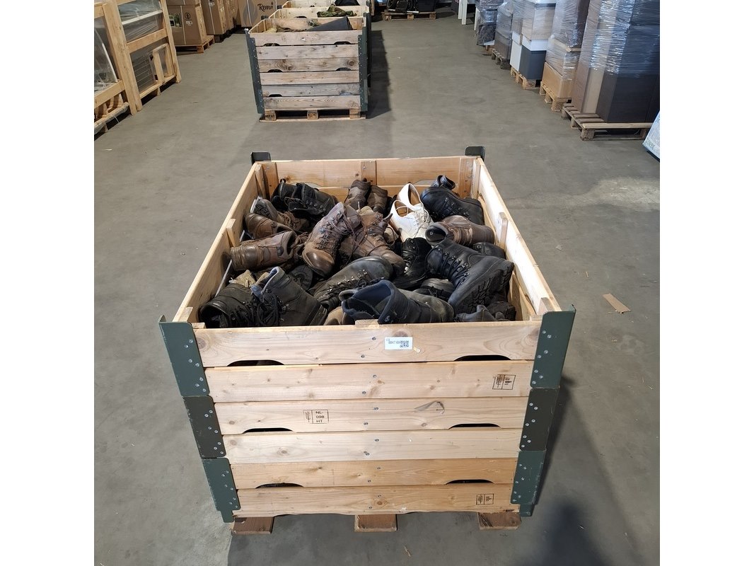 Merk: Meindl / Lowa / Haix / Emma Product: Partij diverse schoenen Defensie Conditie: Gebruikt Specificaties: Inclusief houten krat