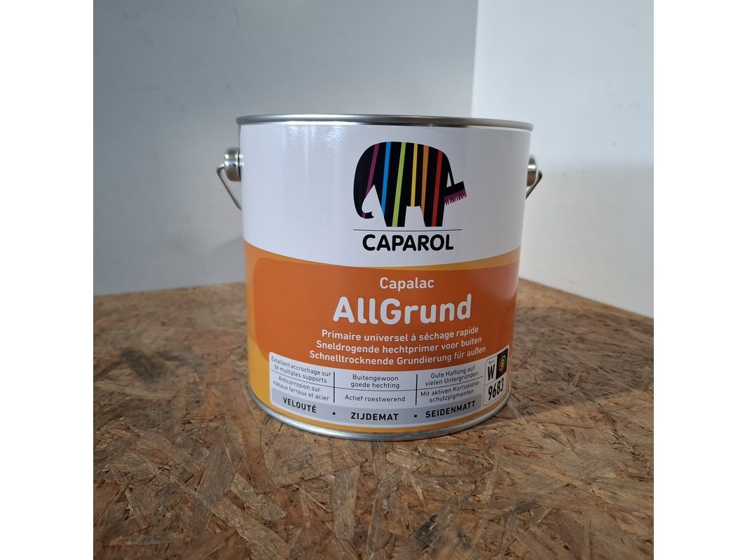 Product: Caparol Allgrund Kleur: Wit Afmeting: 4 x 2,5 liter Conditie: nieuw Specificaties: Partij van 4 x 2,5 liter Caparol Allgrund grondverf wit.