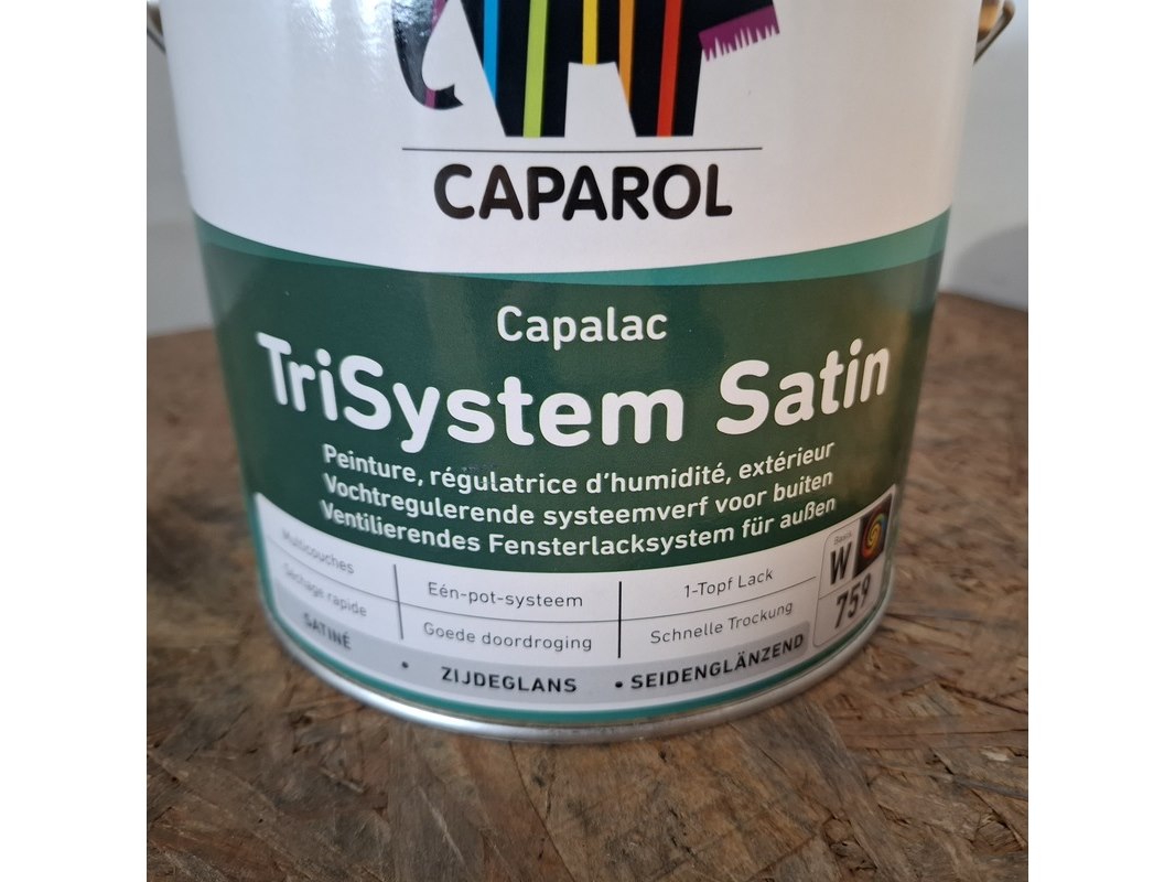 Product: Caparol Trimaxx Satin Kleur: RAL 9010 Afmeting: 4 x 2,5 liter Conditie: Nieuw Specificaties: Partij van 10 liter Zijdeglanslak RAL 9010