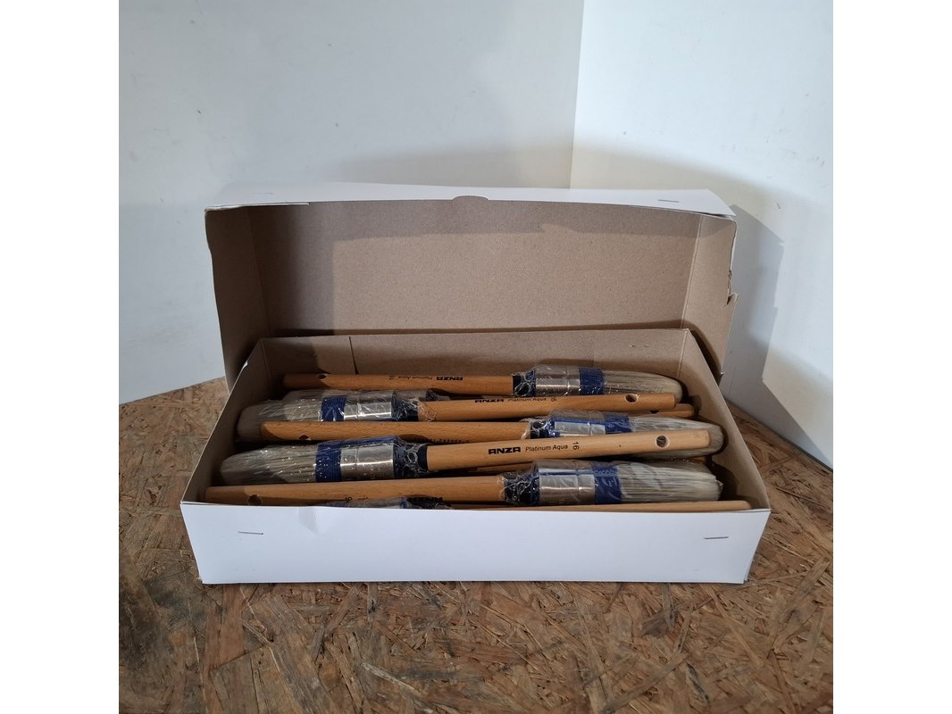 Merk: ANZA Product: Kwasten maat 16 Kleur: Wit Afmeting: 120 stuks Conditie: Nieuw Specificaties: Partij van 120 ANZA kwasten voor zowel watergedragen als terpetine lak.