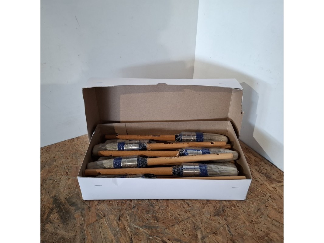 Merk: ANZA Product: Kwasten maat 16 Kleur: Wit Afmeting: 120 stuks Conditie: Nieuw Specificaties: Partij van 120 ANZA kwasten voor zowel watergedragen als terpetine lak.