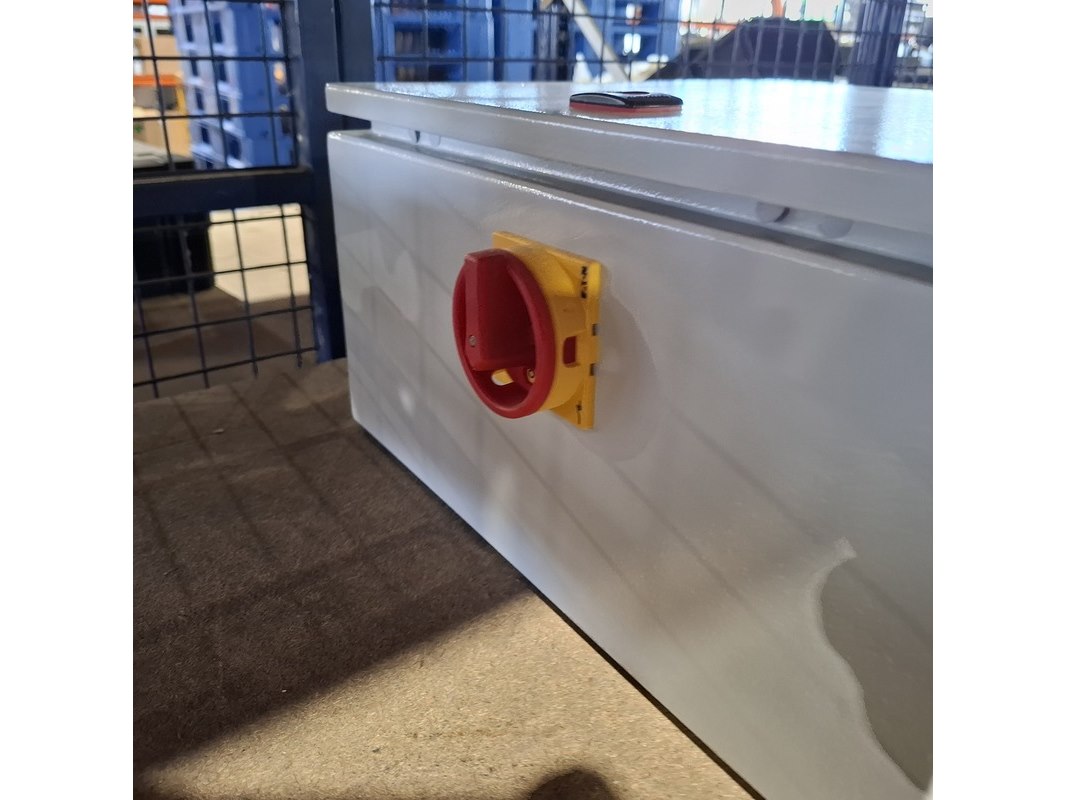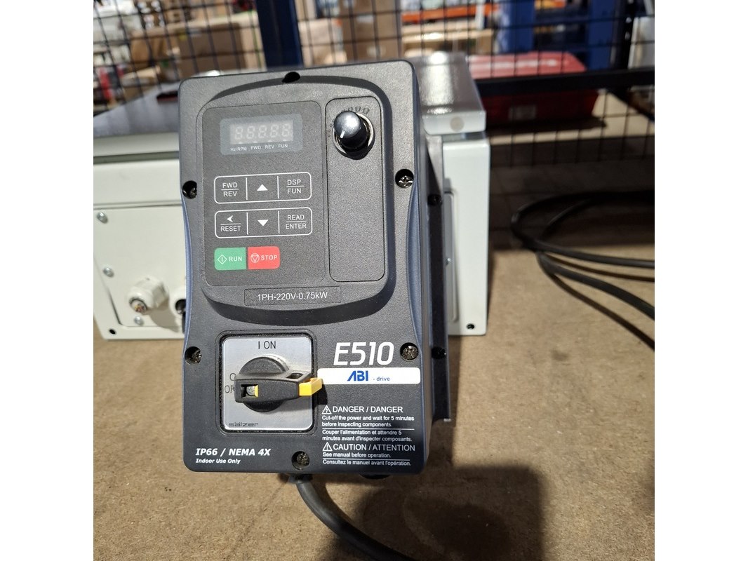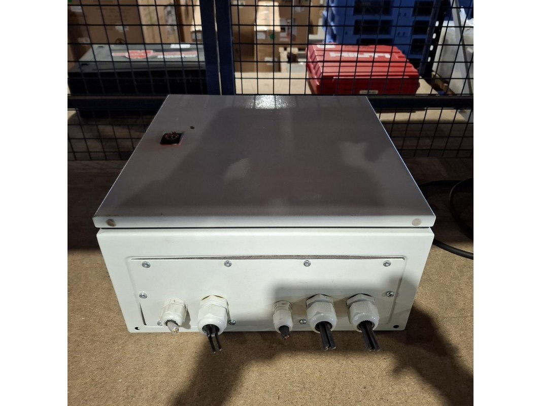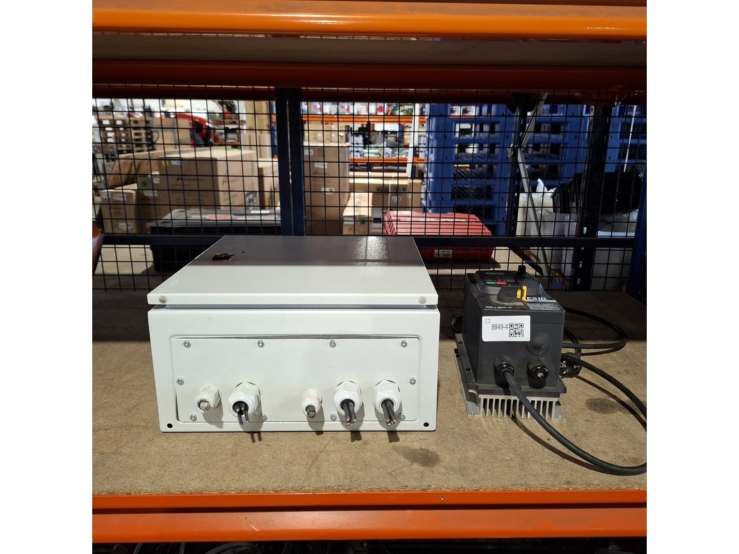 Product: Frequentie regelaar met schakelkast Kleur: Zwart Conditie: Gebruikt Specificaties: Frequentie regelaar met schakelkast