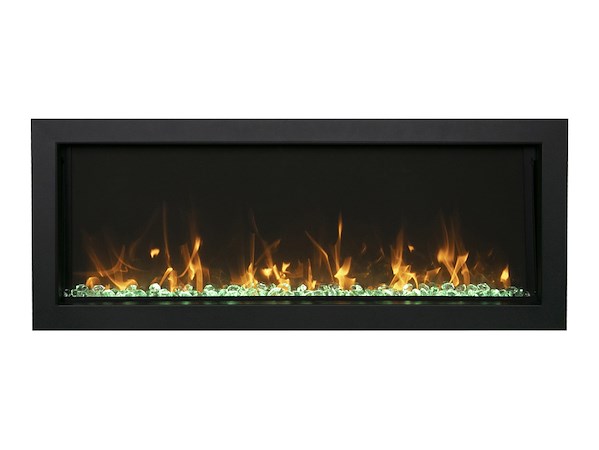Merk: Remii Product: Elektrische sfeerhaard Kleur: Zwart Materiaal: Metal Afmeting: Appliance Width 54 1/8" or 137.6 cm Appliance Height 19 7/8" or 50.4 cm Appliance Depth 4" or 10.25 cm BouwJaar: 2017 Conditie: Nieuw Specificaties: Boasting our Flame presentation with three-color LED light strips allowing for multi-color flame options. With just a click of the included remote control, choose from red, yellow, or orange colored flames. The Extra Slim fireplace comes standard with Canyon Brown and Ocean Blue fire glass media. Additional media options are available for purchase. KEY FEATURES All models are rated for either indoor/outdoor applications State of the art flame presentation: Vibrant, multi-colored state of the art flame presentation – change from Yellow to Orange to Red with just a click of the remote. Very thin – only 4” in-depth 2 Stage heater Hardwire ready Thermostat hard-wire ready Can produce up to 5000 BTU of heat, enough to heat up to 500 sq feet Flame can operate without heat Single remote control for flame & heater included Full frame viewing – unit allows for choice of finishing material to come right to the glass Optional black steel surround comes in the box, it is up to you if you want to use it or not