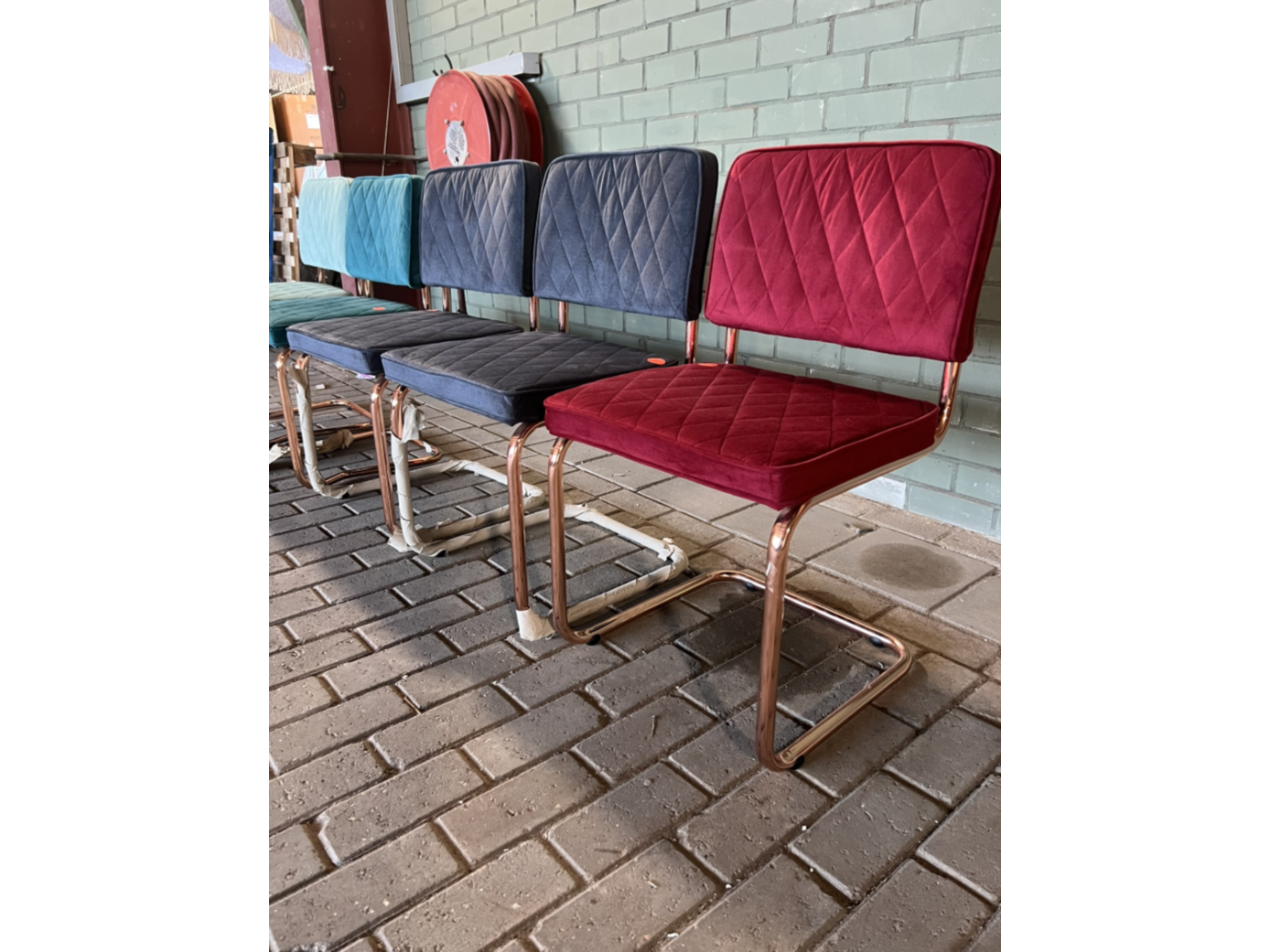 Merk: Zuiver Product: Ridge eetkamerstoel Conditie: Nieuw Specificaties: Leuke set van 5 eetkamerstoelen van het merk Zuiver, verschillende kleuren met een rose frame.