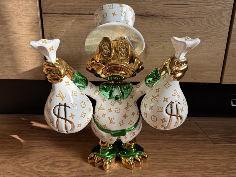 Merk: Lior24 Product: Dagobert Duck beeld Materiaal: Resin Afmeting: 42x35 Conditie: Nieuw Specificaties: Dagobert Duck beeld met Louis Vuitton print