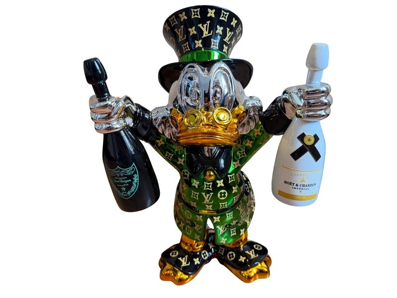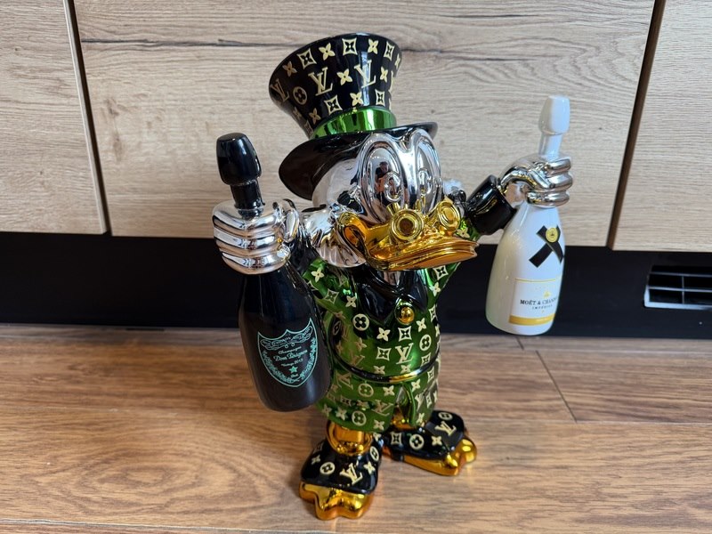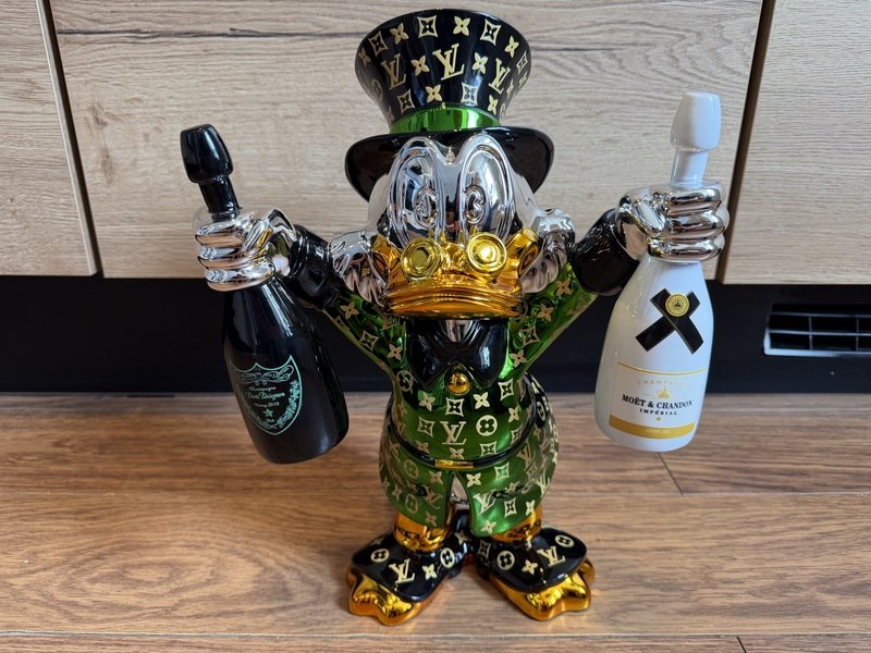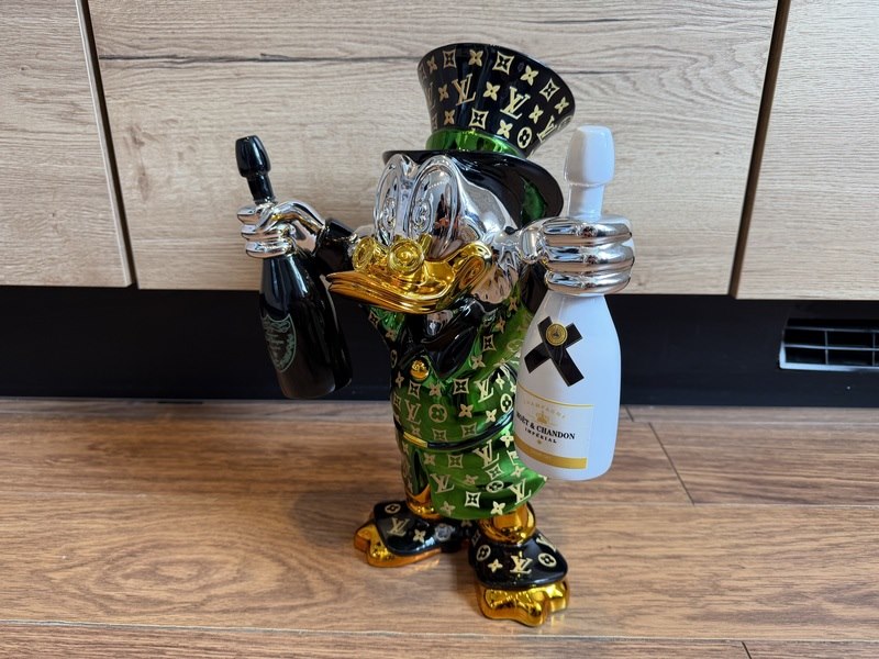Merk: Lior24 Product: Dagobert Duck beeld Materiaal: Resin Afmeting: 42x35cm Conditie: Nieuw Specificaties: Dagobert Duck beeld met Louis Vuitton print