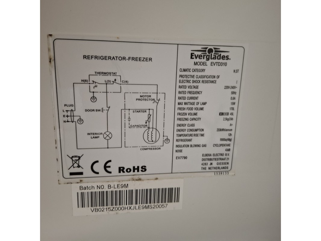 Merk: EVTD310 Product: Koelkast met vriesvak Kleur: Wit Conditie: Gebruikt Specificaties: Zie afbeeldingen voor specificaties