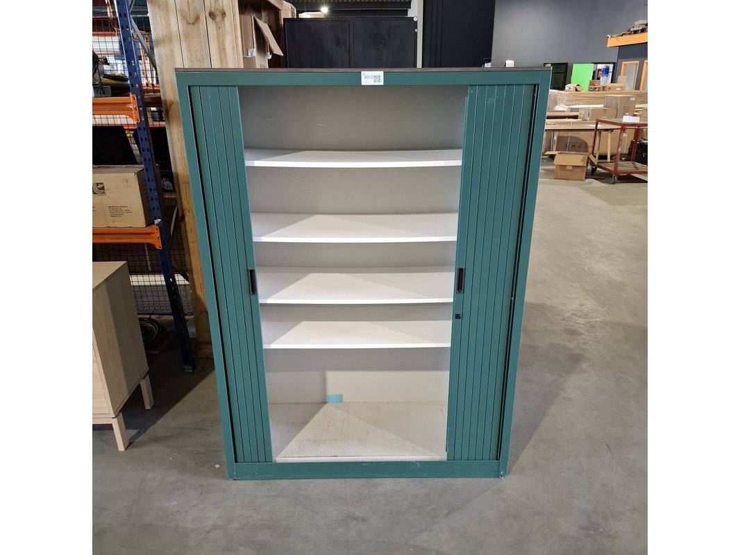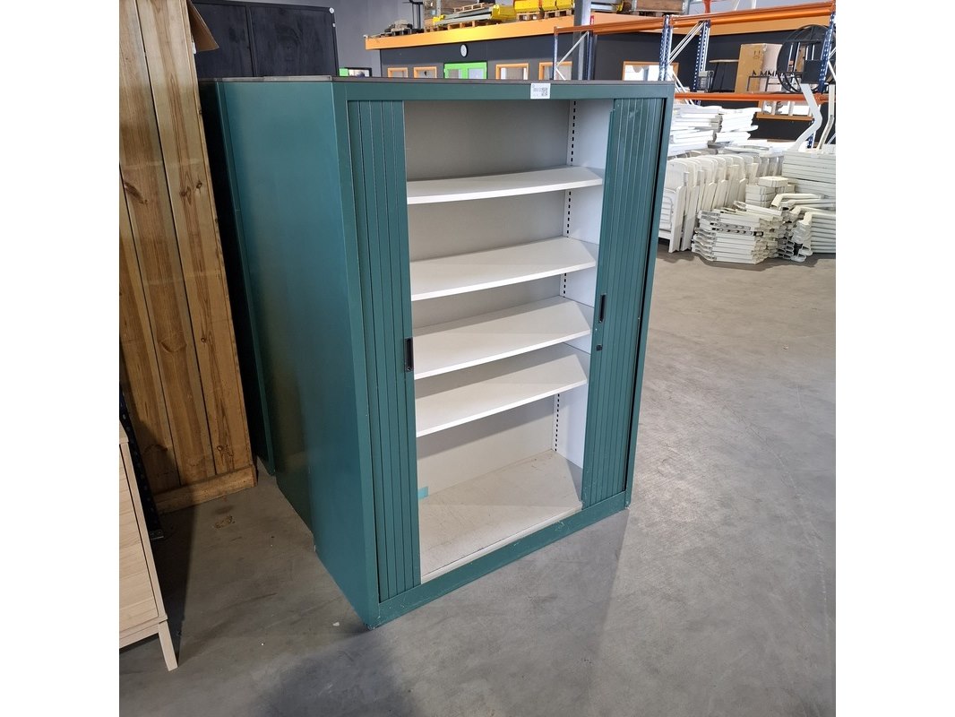 Product: Roldeurkast Afmeting: Hxbxd ca. 165x120x47 Conditie: Gebruikt