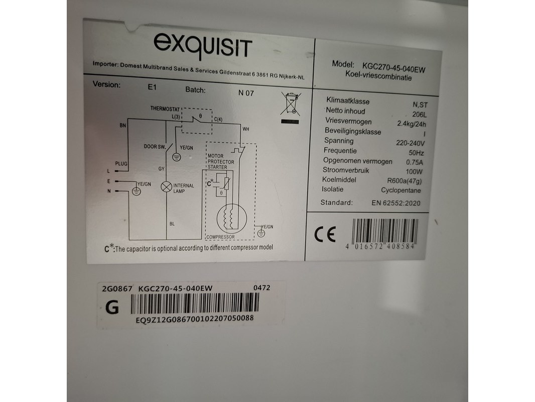 Merk: Exquisit Product: Koelkast met vriesvak Kleur: Wit Conditie: Gebruikt Specificaties: Zie afbeeldingen voor specificaties