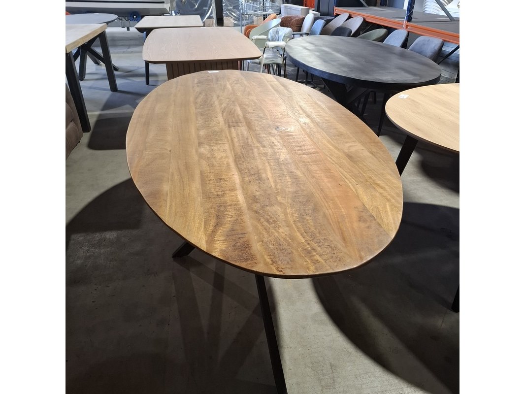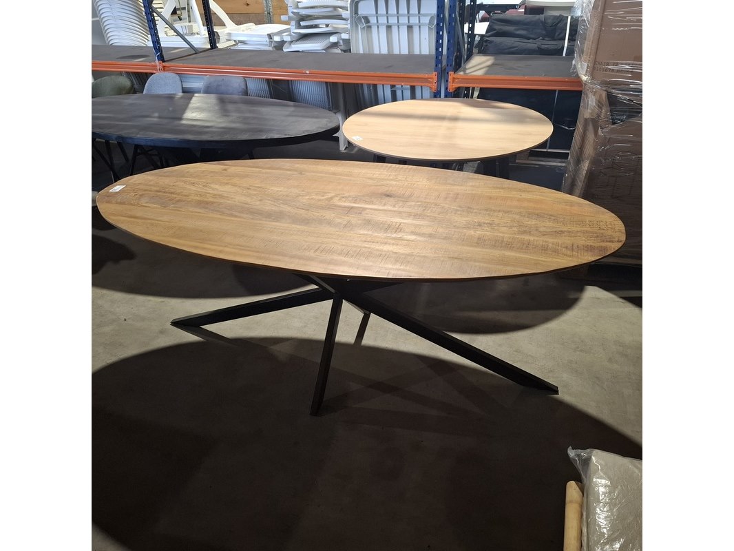 Merk: Starfurn Product: Ovale Tafel Materiaal: Metaal en mangohout Afmeting: 210x100x77 BouwJaar: 2025 Conditie: Nieuw Specificaties: Dit betreft een showroom model
