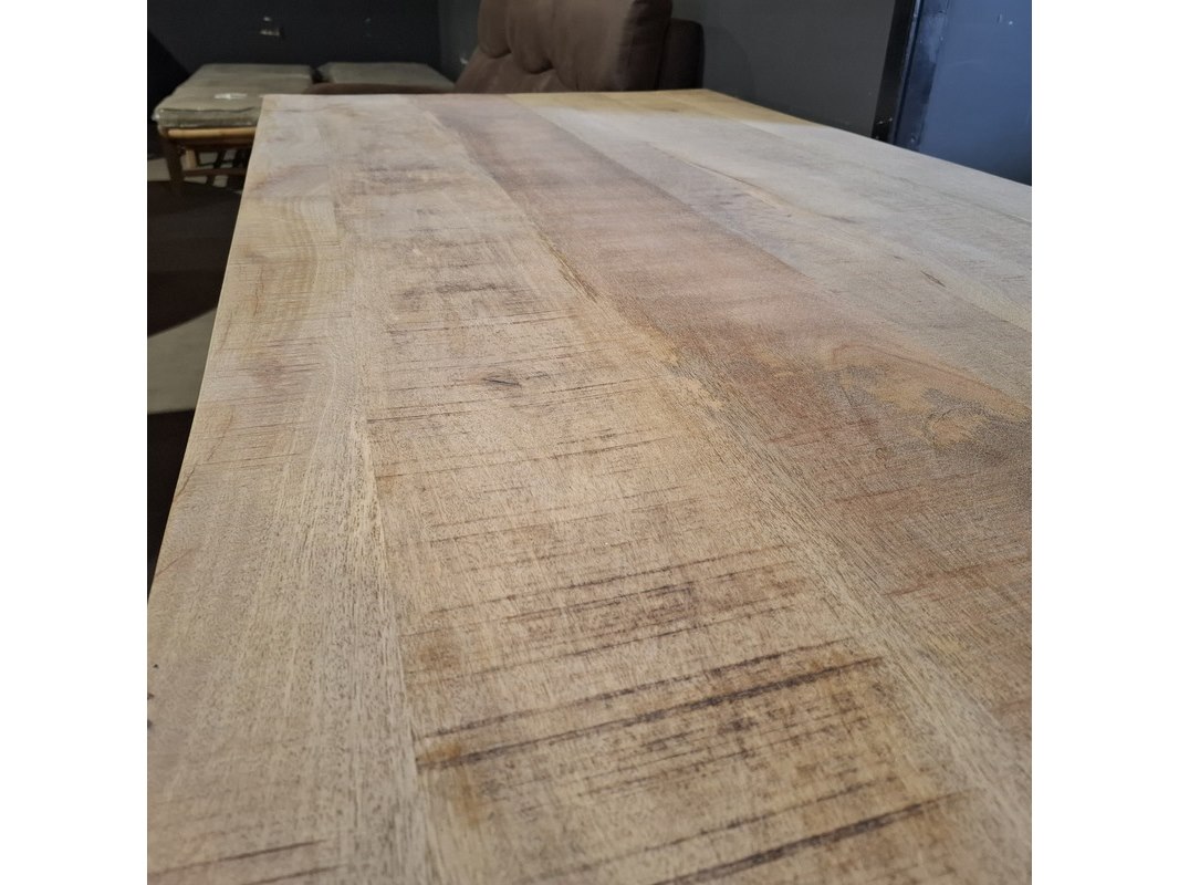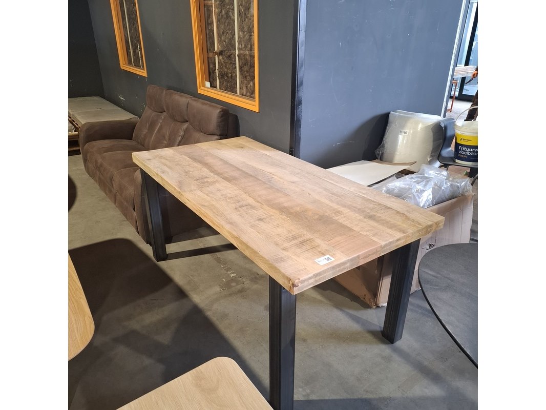 Merk: HSM Product: Eetkamer tafel rechthoekig Materiaal: Metaal en mangohout Afmeting: 180x90x77 BouwJaar: 2025 Conditie: Nieuw Specificaties: Dir betreft een showroom model