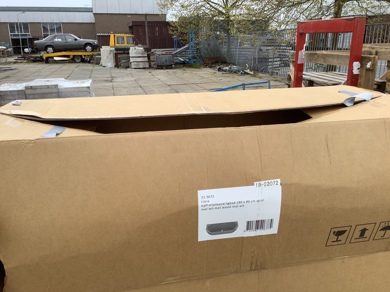 Merk: WB Product: Half Vrijstaand ligbad 180x80 cm Kleur: Wit Materiaal: Acryl Afmeting: 180x80 cm Conditie: Retourgoed