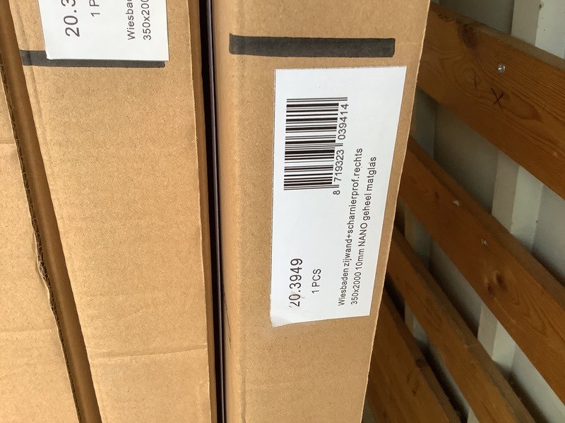 Merk: WB Product: Draaibare zijwand met scharnier profiel rechts Kleur: Mat glas Afmeting: 35x200 cm Conditie: Nieuw Specificaties: 10 mm Nano matglas