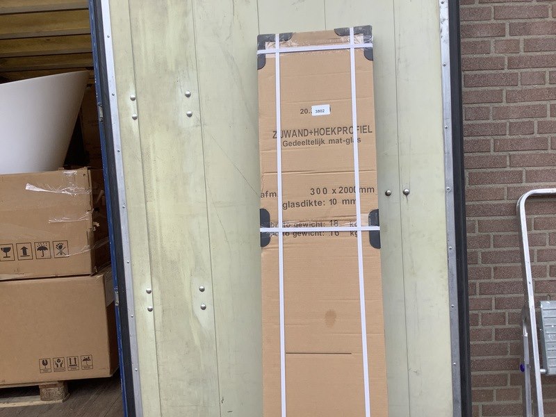 Merk: WB Product: Zijwand met hoekprofiel Afmeting: 30x200 cm Conditie: Nieuw Specificaties: 10 mm Nano matglas