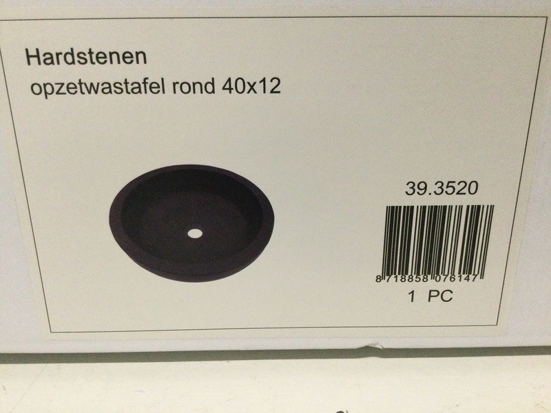 Merk: WB Product: Hardstenen opzetwastafel Rond 40x12 cm Kleur: Grijs tinten Conditie: Retourgoed