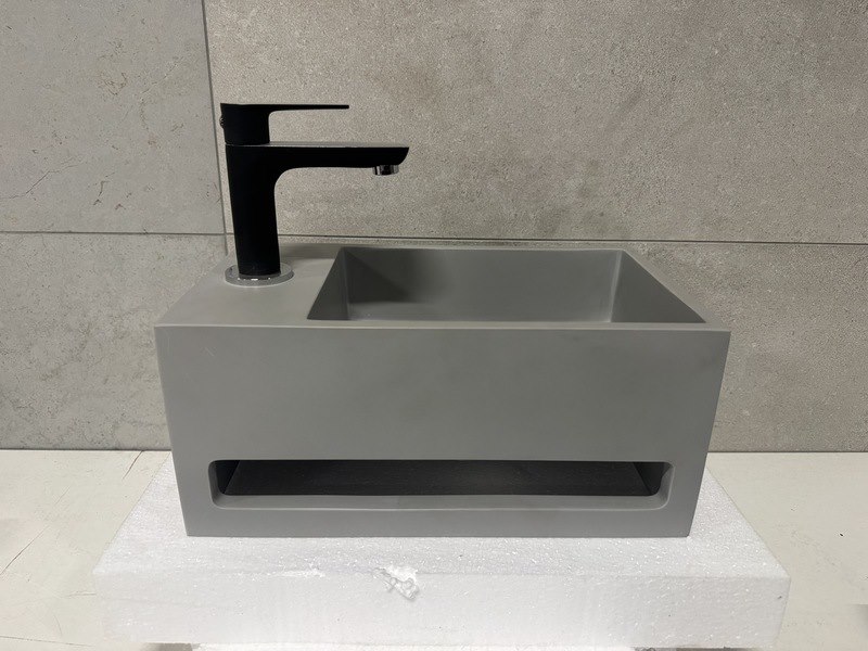 Fontein solid surface 35x5x20x16 cm + kraan wb, licht grijs