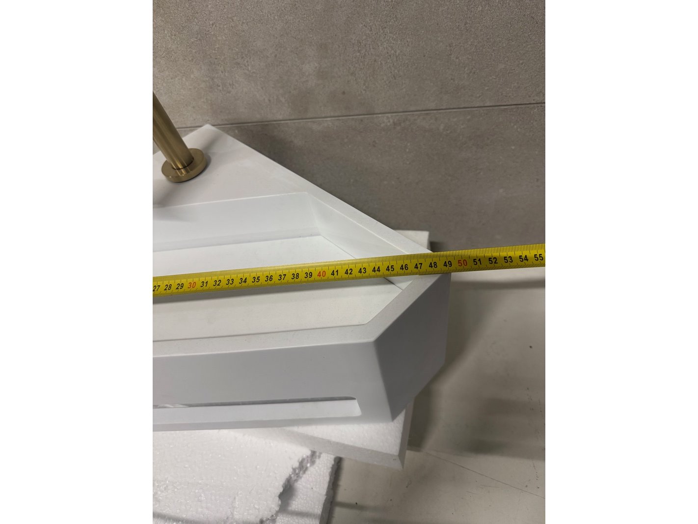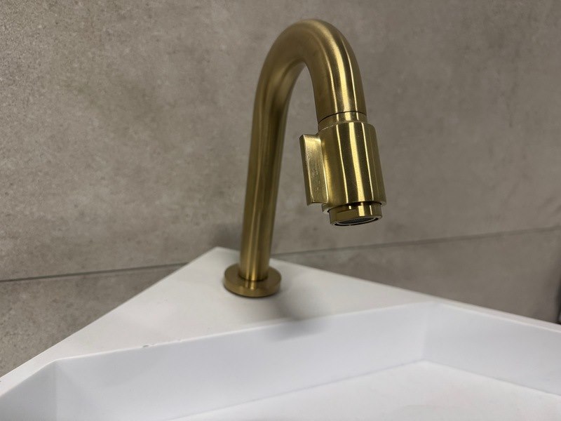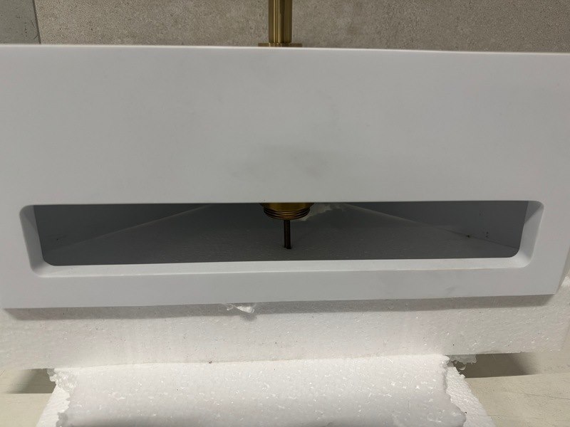 Merk: WB Product: Hoekfontein Solid Surface 35x49x16 cm + kraan Kleur: Wit Materiaal: Solid Surface Afmeting: 35x49x16 cm Conditie: Retourgoed