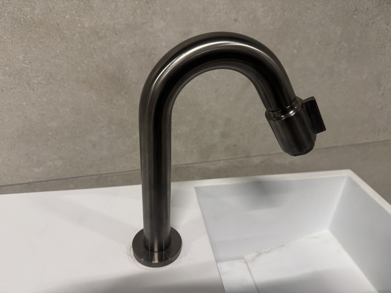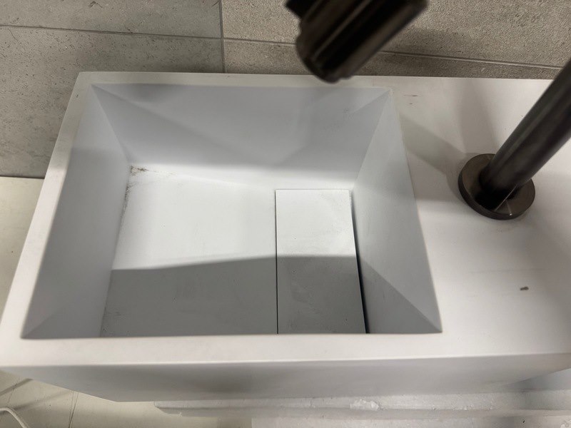 Merk: WB Product: Fontein Solid Surface 20x54x20 cm + kraan Materiaal: Solid Surface Afmeting: 20x54x20 cm Conditie: Retourgoed