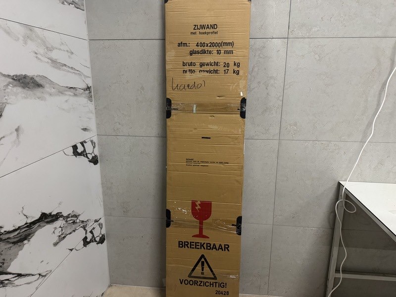 Merk: WB Product: Zijwand + hoekprofiel 40x200 cm Afmeting: 40x200 cm Conditie: Retourgoed Specificaties: 10 mm nano glas