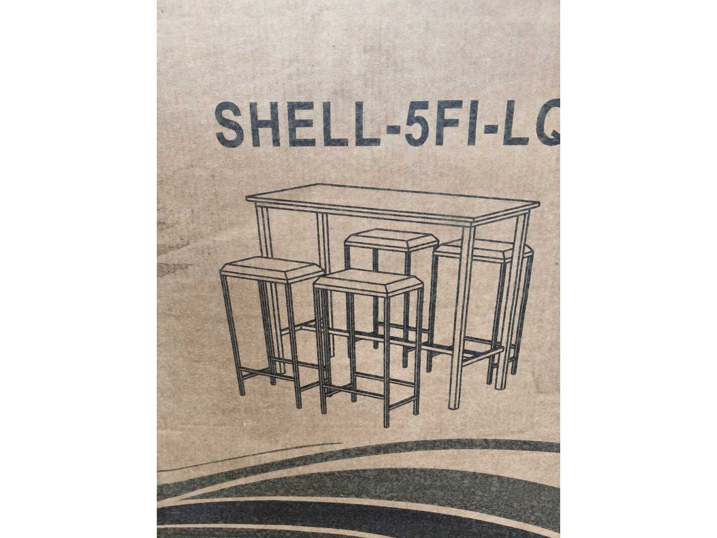 Product: Hoge bartafel met mango look blad en 4 barkrukken Kleur: Zwart/mango Afmeting: Afmeting zie foto Conditie: Nieuw Specificaties: Onderstel zwart, zitting bruin, blad mango hout look