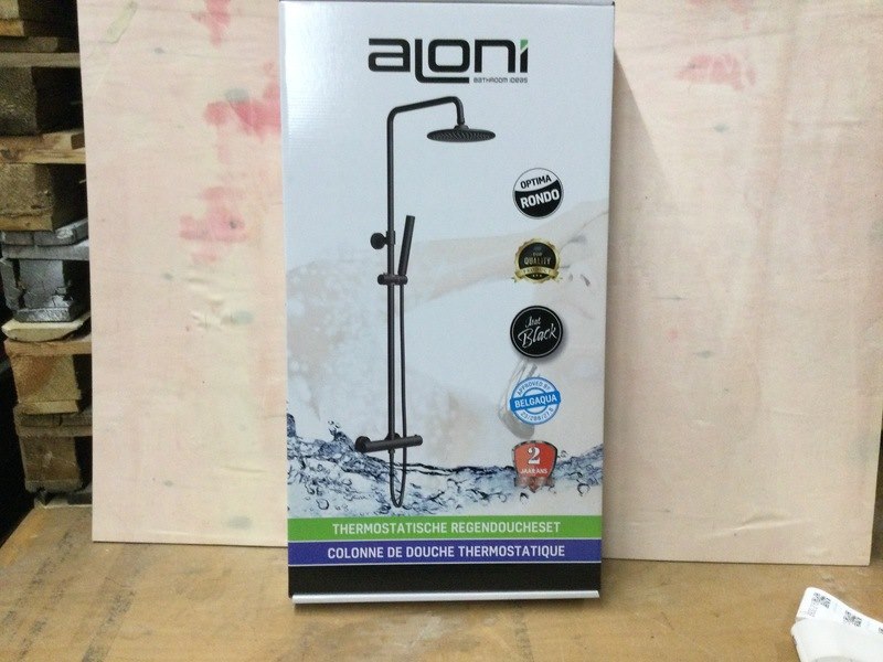 Merk: Aloni Product: Thermostatische regendoucheset Kleur: Zwart Conditie: Nieuw