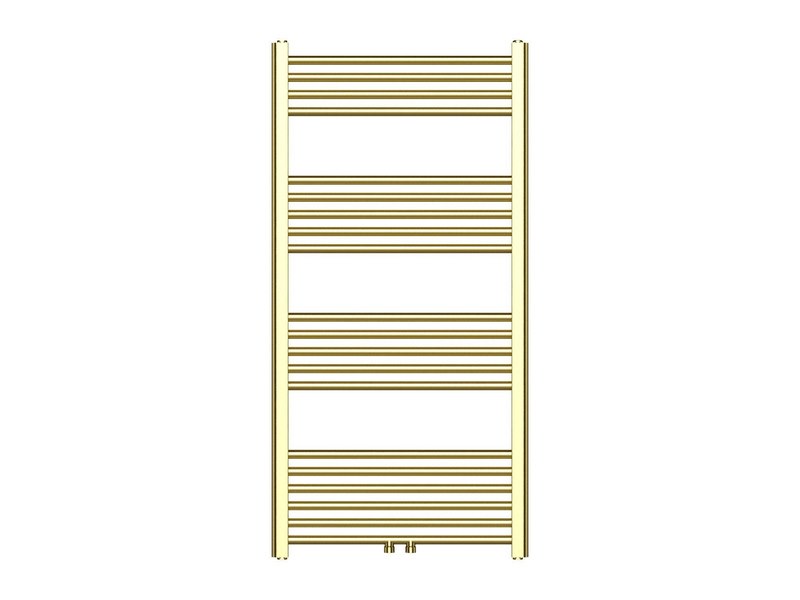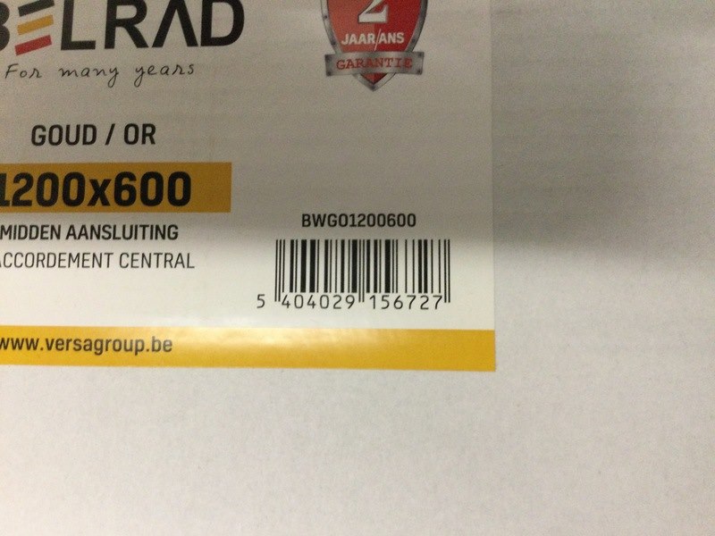 Merk: Belrad Product: Handdoekradiator 120x60 cm Kleur: Goud Afmeting: 120x60 cm, 414 Watt Conditie: Nieuw Specificaties: Midden aansluiting