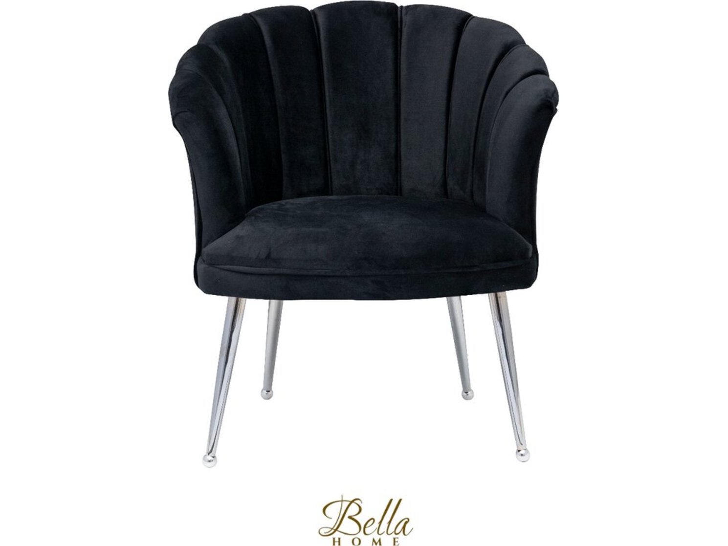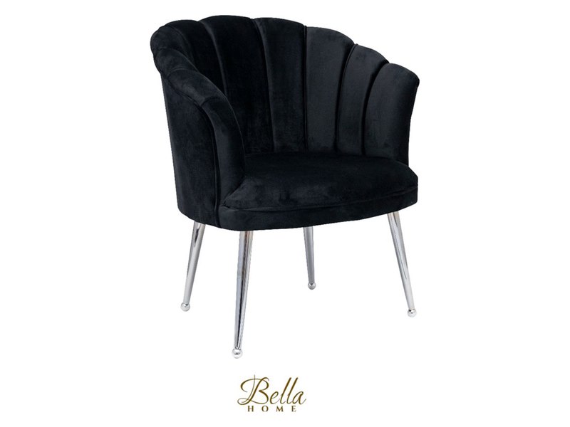 Bella home mila - fauteuil - velvet - schelp - zwarte met zilveren poten bella home, zwart