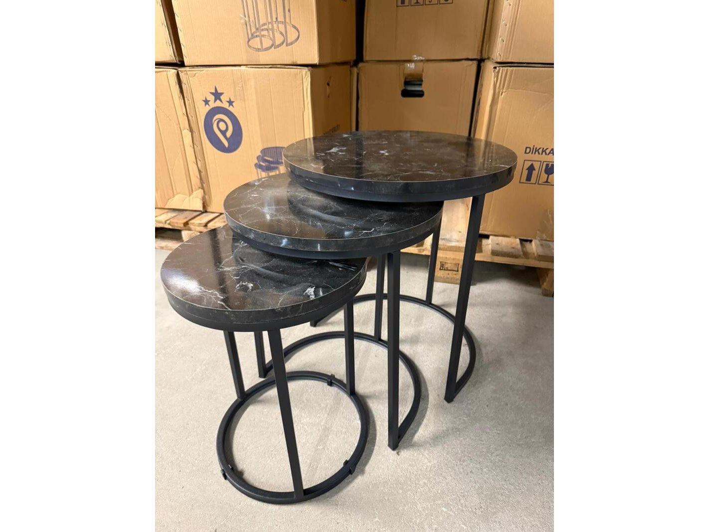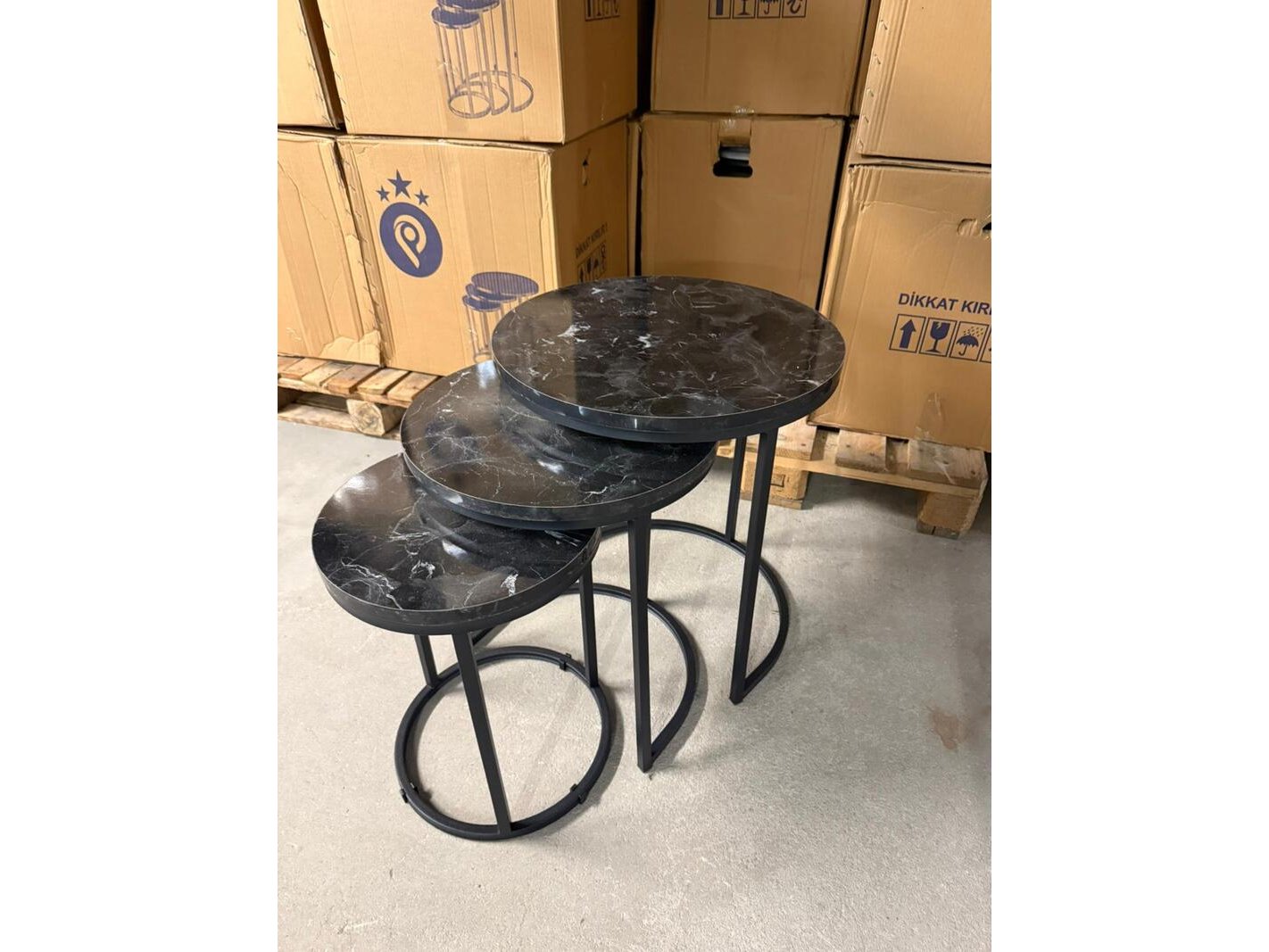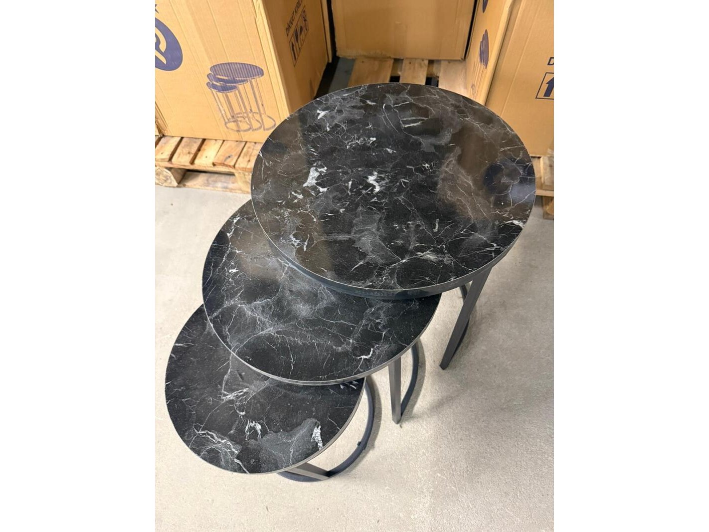 Product: 3-Delige bijzettafel Conditie: Nieuw Specificaties: Deze driedelige bijzettafel set combineert een verfijnd design met praktische veelzijdigheid. De tafels zijn ontworpen om perfect samen te gebruiken als speelse compositie, maar kunnen ook afzonderlijk worden geplaatst als stijlvolle bijzettafel, salontafel of decoratief element. Het elegante onderstel zorgt voor een luxe en luchtige uitstraling, terwijl het ronde blad een tijdloos karakter toevoegt. Dankzij de verschillende hoogtes en diameters schuiven de tafels moeiteloos onder elkaar, wat ruimtebesparend én visueel aantrekkelijk is. Ideaal voor de woonkamer, slaapkamer, hal of kantoor. De set past perfect in zowel moderne, minimalistische als klassieke interieurs en vormt een subtiele blikvanger in elke ruimte. Afmetingen Grote tafel Hoogte: 52 cm Diameter: 47 cm Middelgrote tafel Hoogte: 47 cm Diameter: 39 cm Kleine tafel Hoogte: 42 cm Diameter: 31 cm"