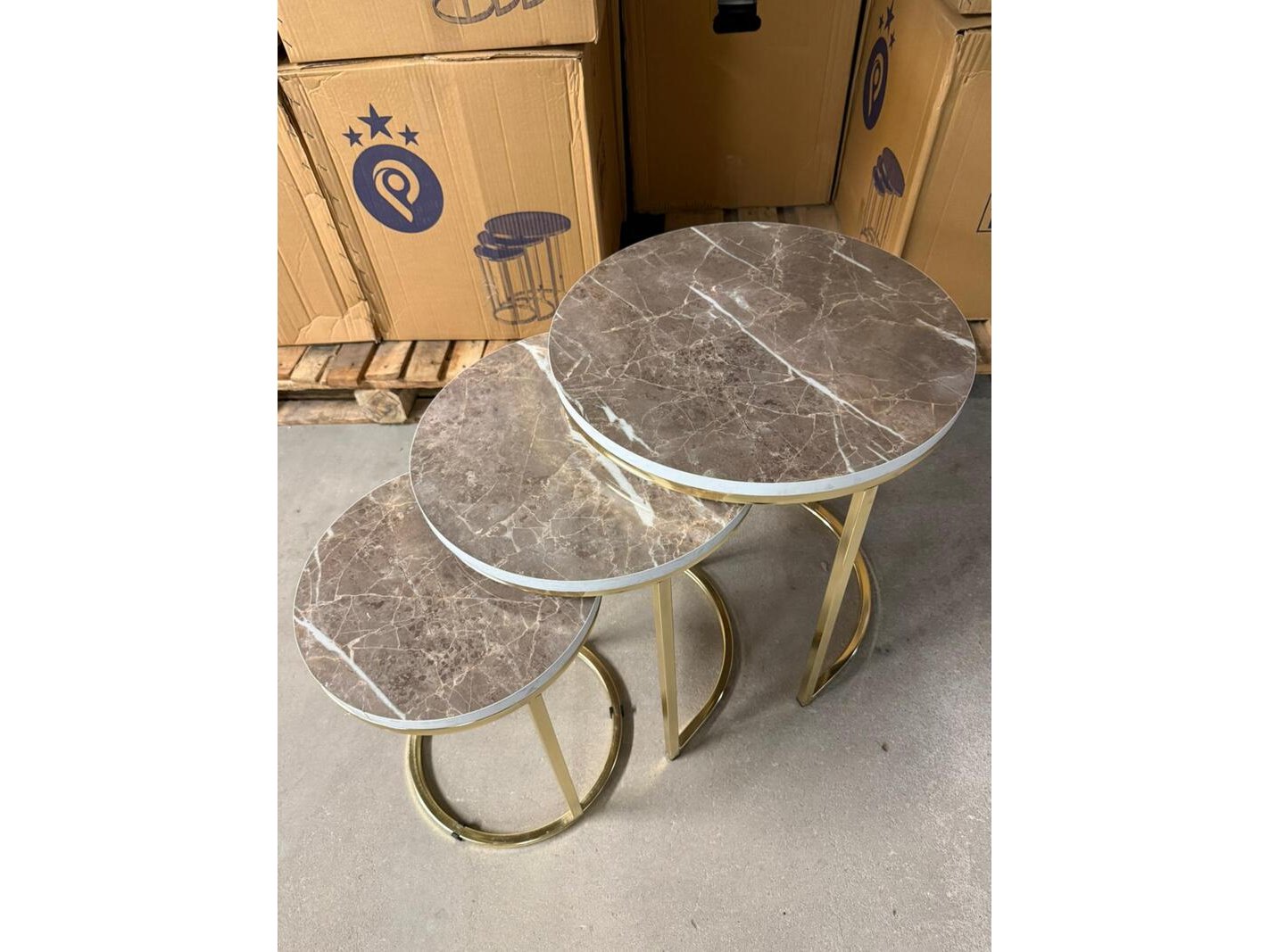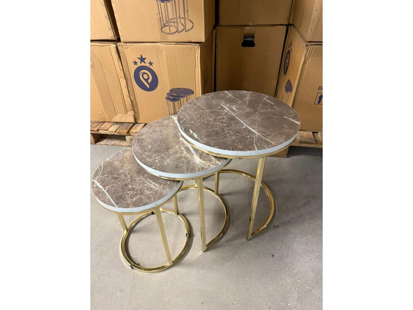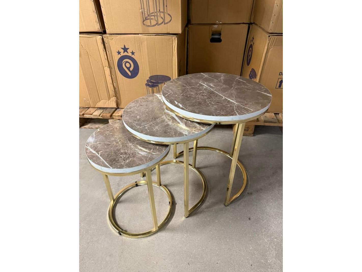 Product: 3-Delige bijzettafel Conditie: Nieuw Specificaties: Deze driedelige bijzettafel set combineert een verfijnd design met praktische veelzijdigheid. De tafels zijn ontworpen om perfect samen te gebruiken als speelse compositie, maar kunnen ook afzonderlijk worden geplaatst als stijlvolle bijzettafel, salontafel of decoratief element. Het elegante onderstel zorgt voor een luxe en luchtige uitstraling, terwijl het ronde blad een tijdloos karakter toevoegt. Dankzij de verschillende hoogtes en diameters schuiven de tafels moeiteloos onder elkaar, wat ruimtebesparend én visueel aantrekkelijk is. Ideaal voor de woonkamer, slaapkamer, hal of kantoor. De set past perfect in zowel moderne, minimalistische als klassieke interieurs en vormt een subtiele blikvanger in elke ruimte. Afmetingen Grote tafel Hoogte: 52 cm Diameter: 47 cm Middelgrote tafel Hoogte: 47 cm Diameter: 39 cm Kleine tafel Hoogte: 42 cm Diameter: 31 cm"