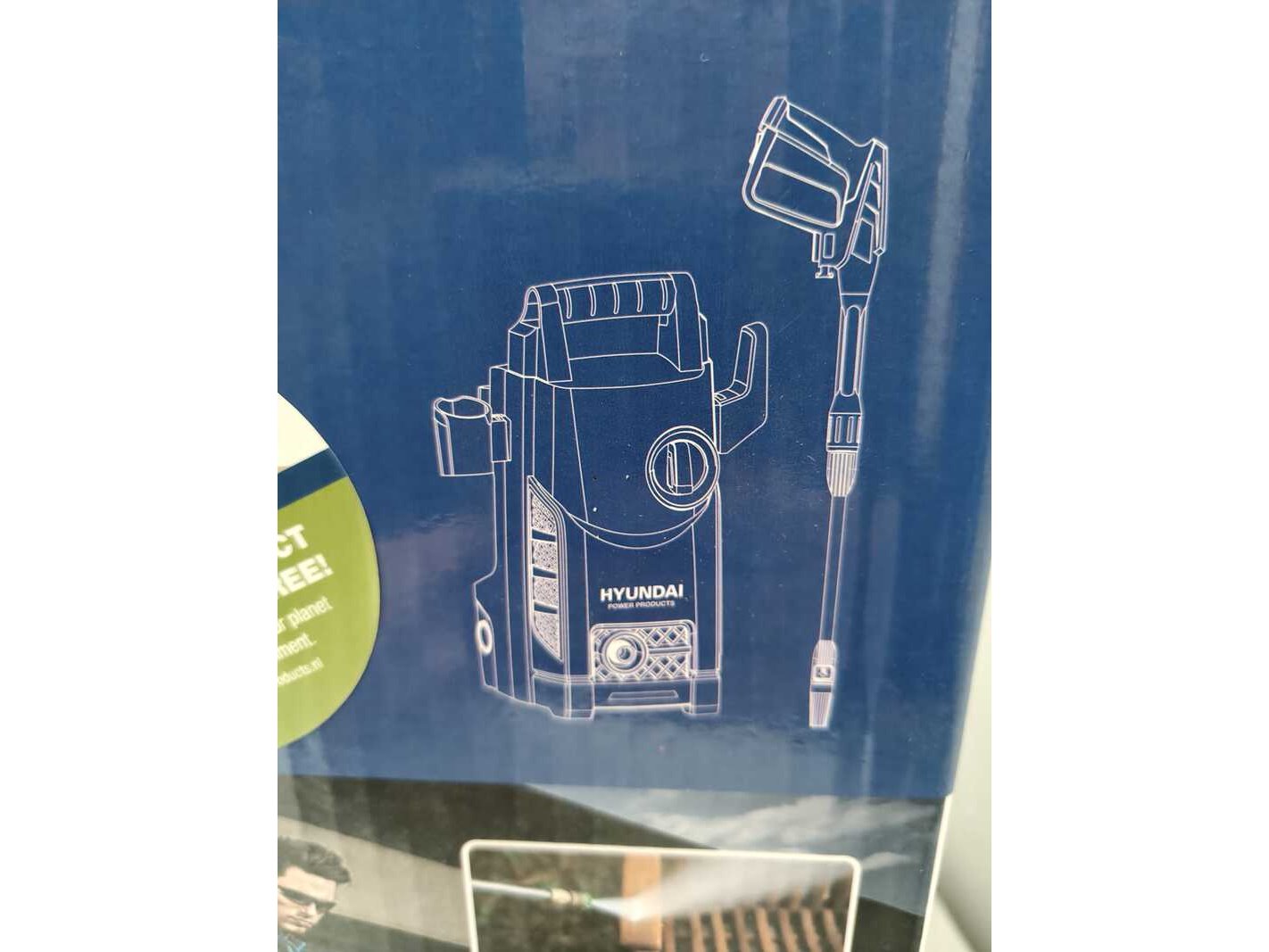 Merk: Hyundai Product: Hogedrukreiniger Kleur: Blauw Materiaal: Kunststof Conditie: Nieuw Specificaties: 105 Bar, 1400 Watt