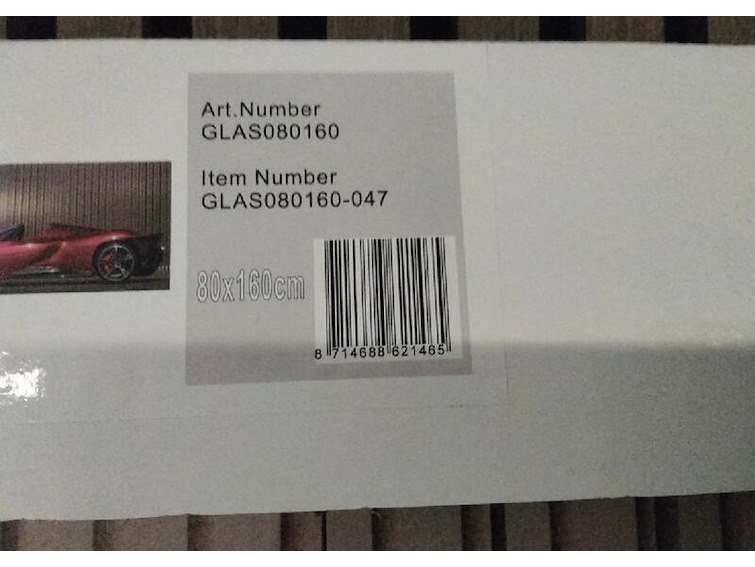 Product: Zeer groot glas schilderij van Ferrari Afmeting: 160x80 cm Conditie: Nieuw Specificaties: Met ophangsysteem