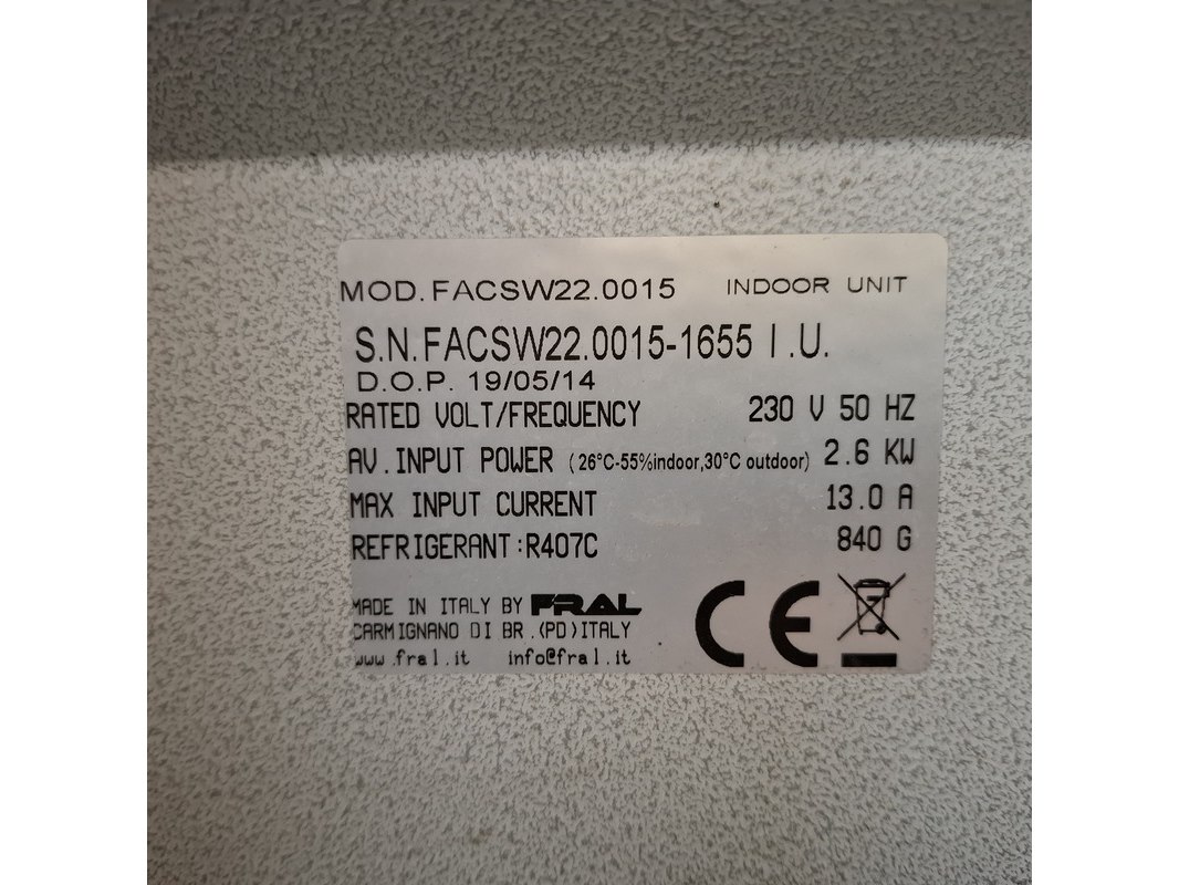 Merk: Fral Product: Airconditioning 7kW 230V BouwJaar: 2014