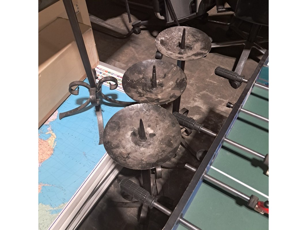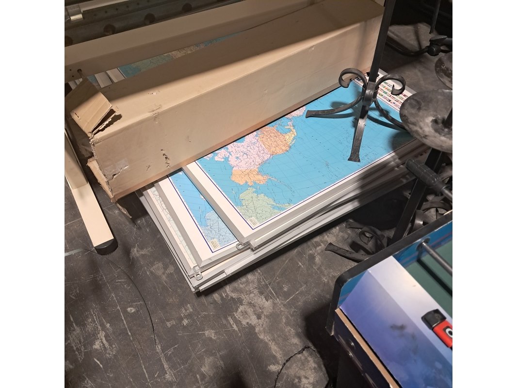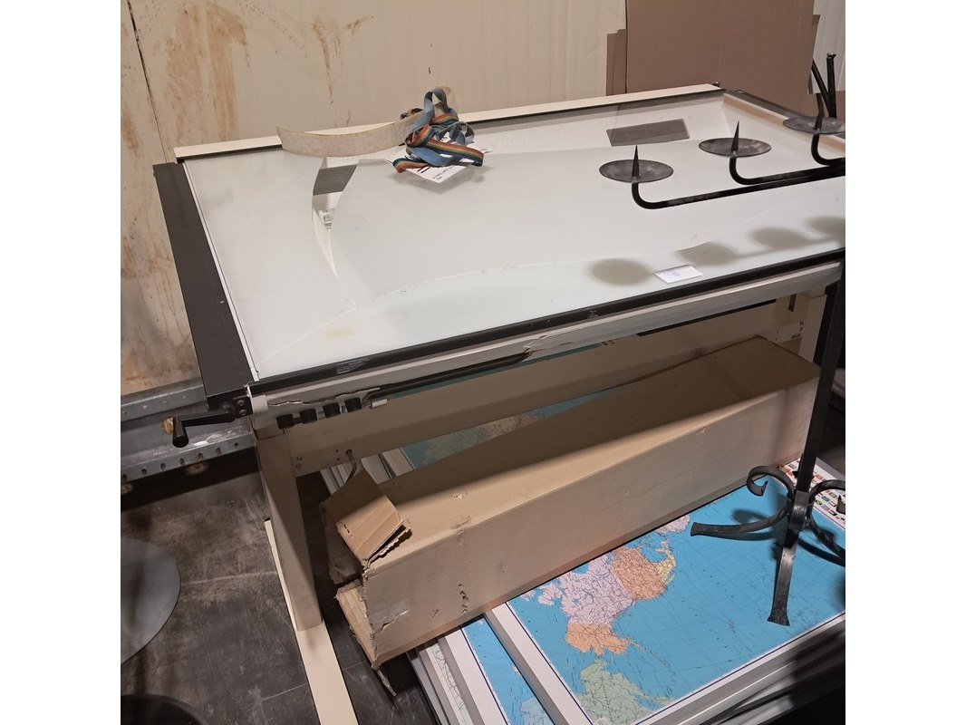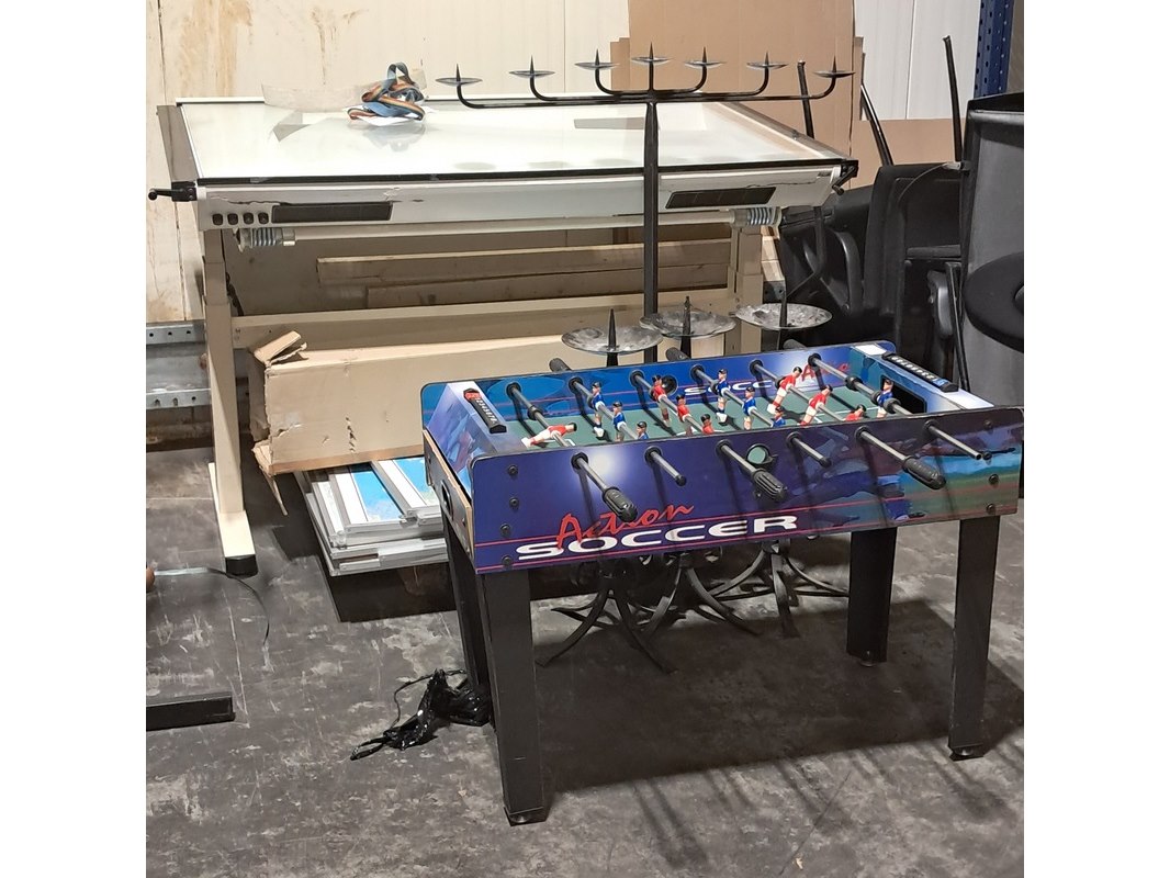 Product: Partij bedrijfsinventaris Specificaties: Bestaande uit o.a. voetbaltafel, snijtafel, kaarsenstandaards, rookpaal, landschapskaarten etc. Diverse beschadigingen en gebruikssporen.