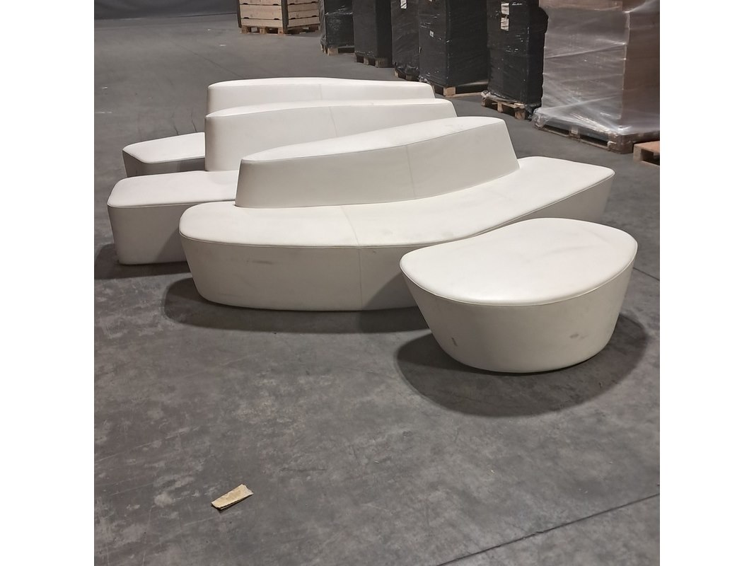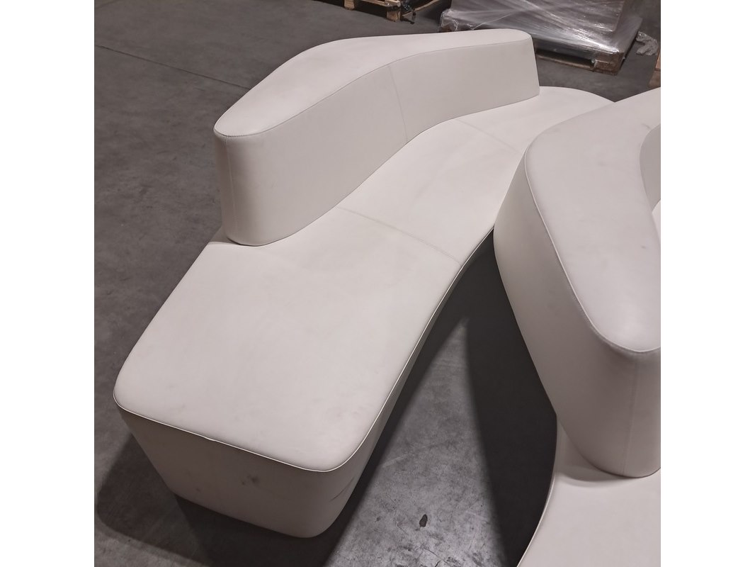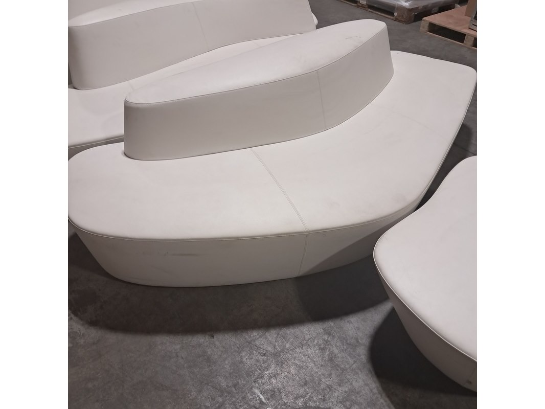 Merk: Tacchini Product: Bank Afmeting: Lxb ca. 216x80 cm Conditie: Gebruikt Specificaties: Inclusief 1x poef. Diverse beschadigingen en gebruikssporen.