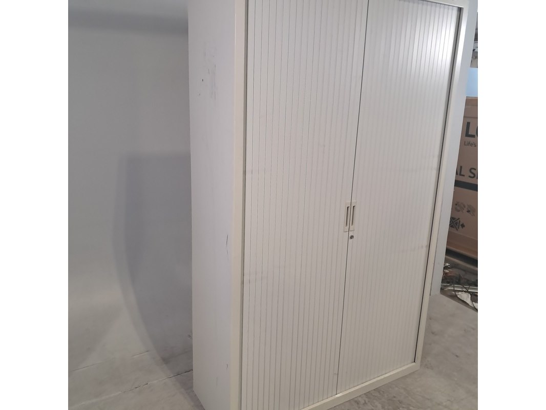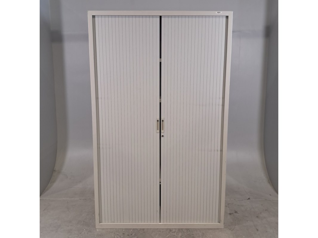 Product: Jaloeziekast Afmeting: Hxbxd ca. 198x120x43 cm Conditie: Gebruikt Specificaties: Diverse beschadigingen en gebruikssporen.