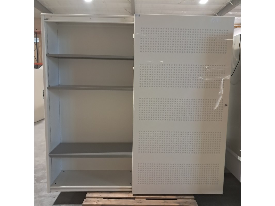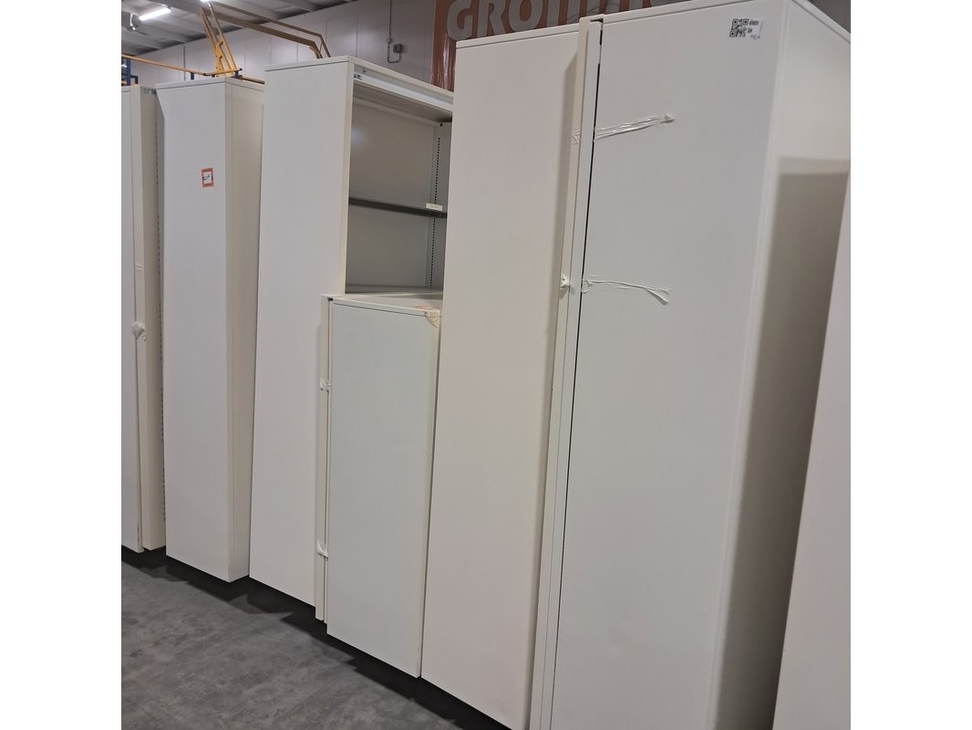 Product: Zweefdeurkast Afmeting: hxbxd ca. 195x200x50 cm./120x200x50 cm. Conditie: gebruikt Specificaties: De kasten hebben diverse beschadigingen en gebruikssporen. Exclusief sleutel. Enkele foto's betreffen voorbeeldfoto's, staat en conditie kan afwijken.
