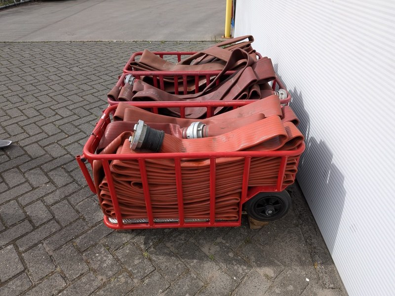 Product: Brandslangwagen met partij brandslangen Afmeting: Diverse lengtes en kopmaten
