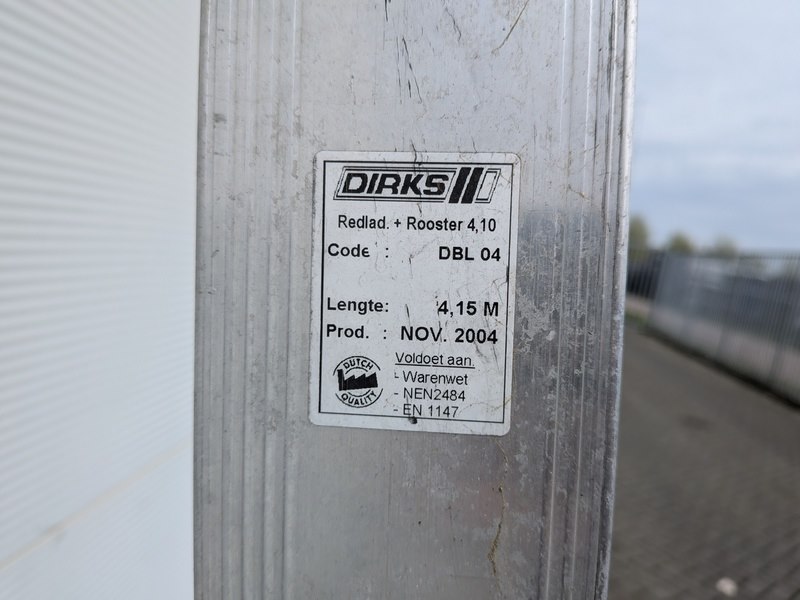 Merk: DIRKS Product: Brandweer ladder Materiaal: aluminium Afmeting: 4,15 m BouwJaar: 2004