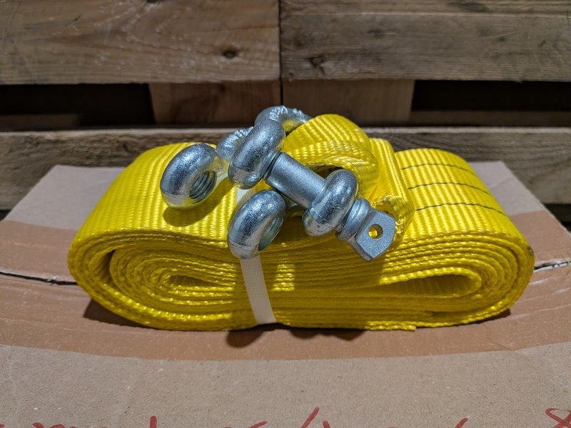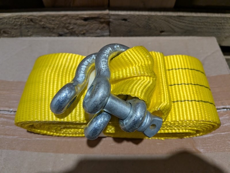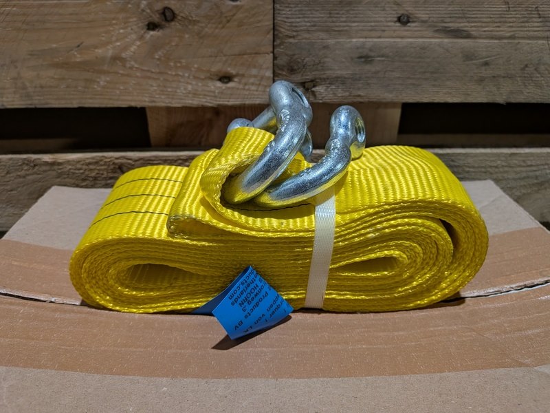 Product: Sleepband met harpsluiting Afmeting: Lengte: 4,2 m Conditie: Nieuw Specificaties: Max. trekcapaciteit: 10.000 kg (10 ton) Lengte: 4,2 m
