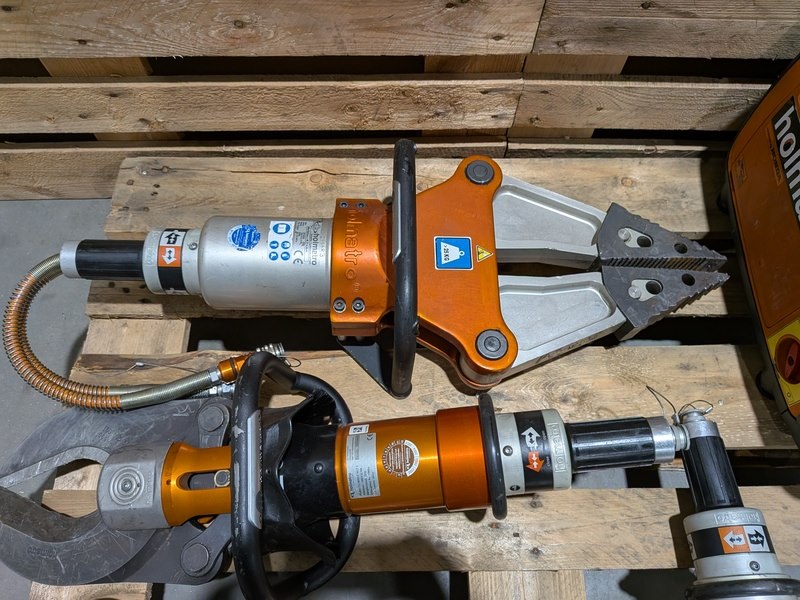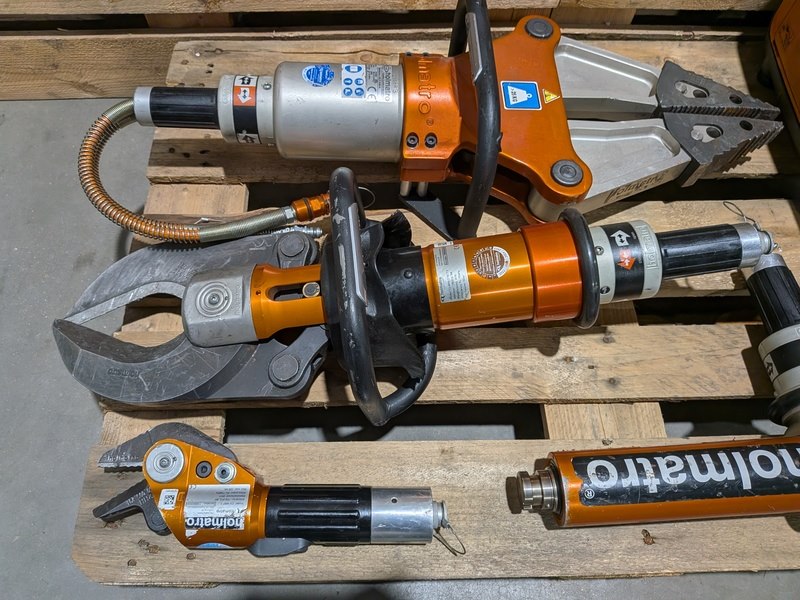 Merk: Holmatro Product: Set hydraulisch redgereedschap Specificaties: Bestaande uit: • holmatro DPU 31 PC duo-pomp, 2008 | 185028 • holmatro SP3260 hydraulische spreider, 2000 | 67484 • holmatro CU 4055 C NCT II hydraulische schaar, 2010 | 1082044HH • holmatro RA 4321 C telescopische ram, 2008 | 196296 • holmatro CU 4007 C knipschaar, 2011 | 1100935HH • Hydrauliek slang